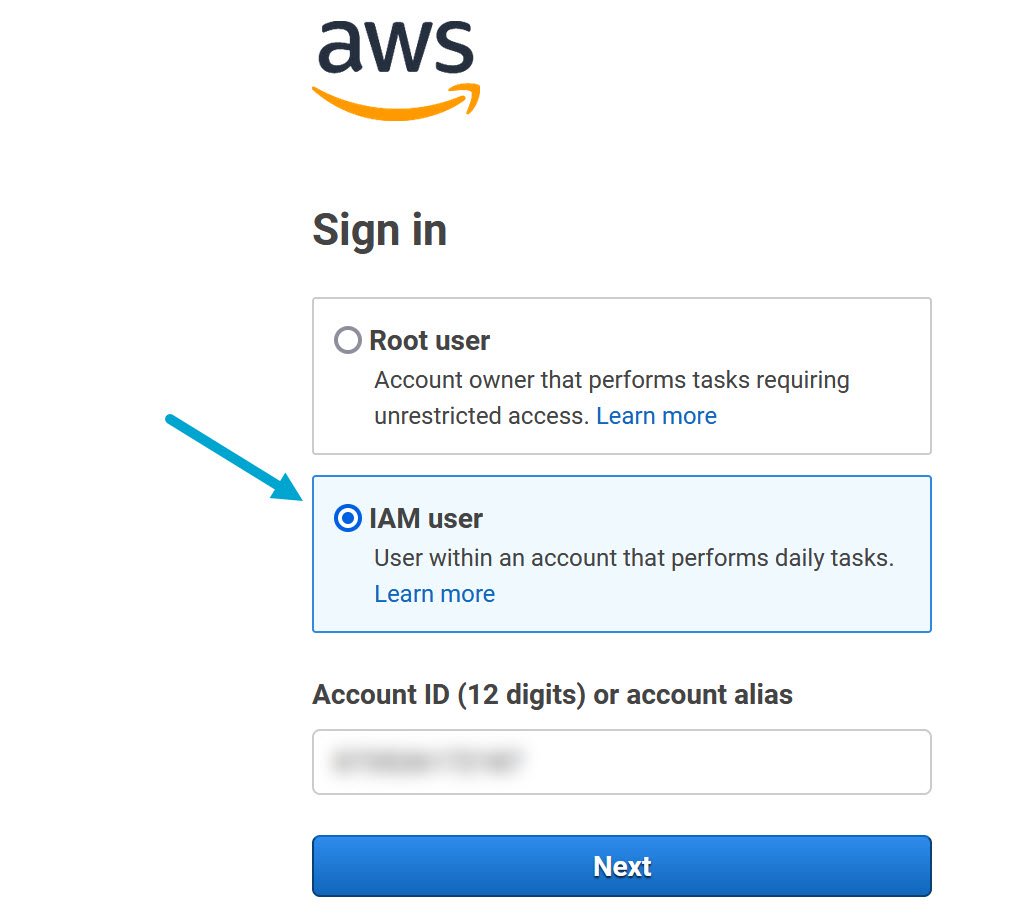 Use your AWS Account ID and ogin with the IAM user credentials