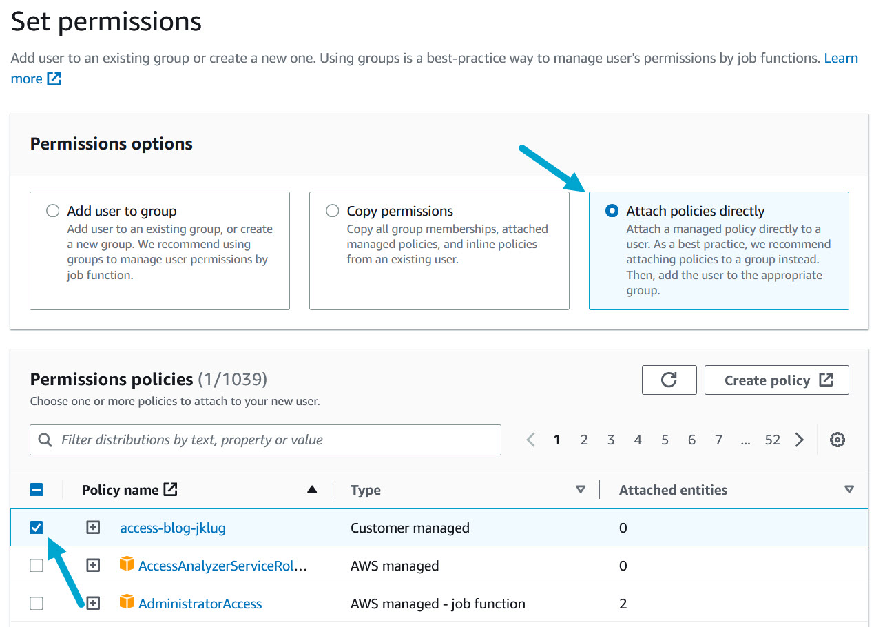 Attach the IAM Policy and create the user: