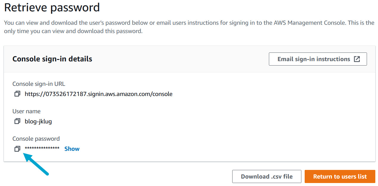 Copy the password for the user