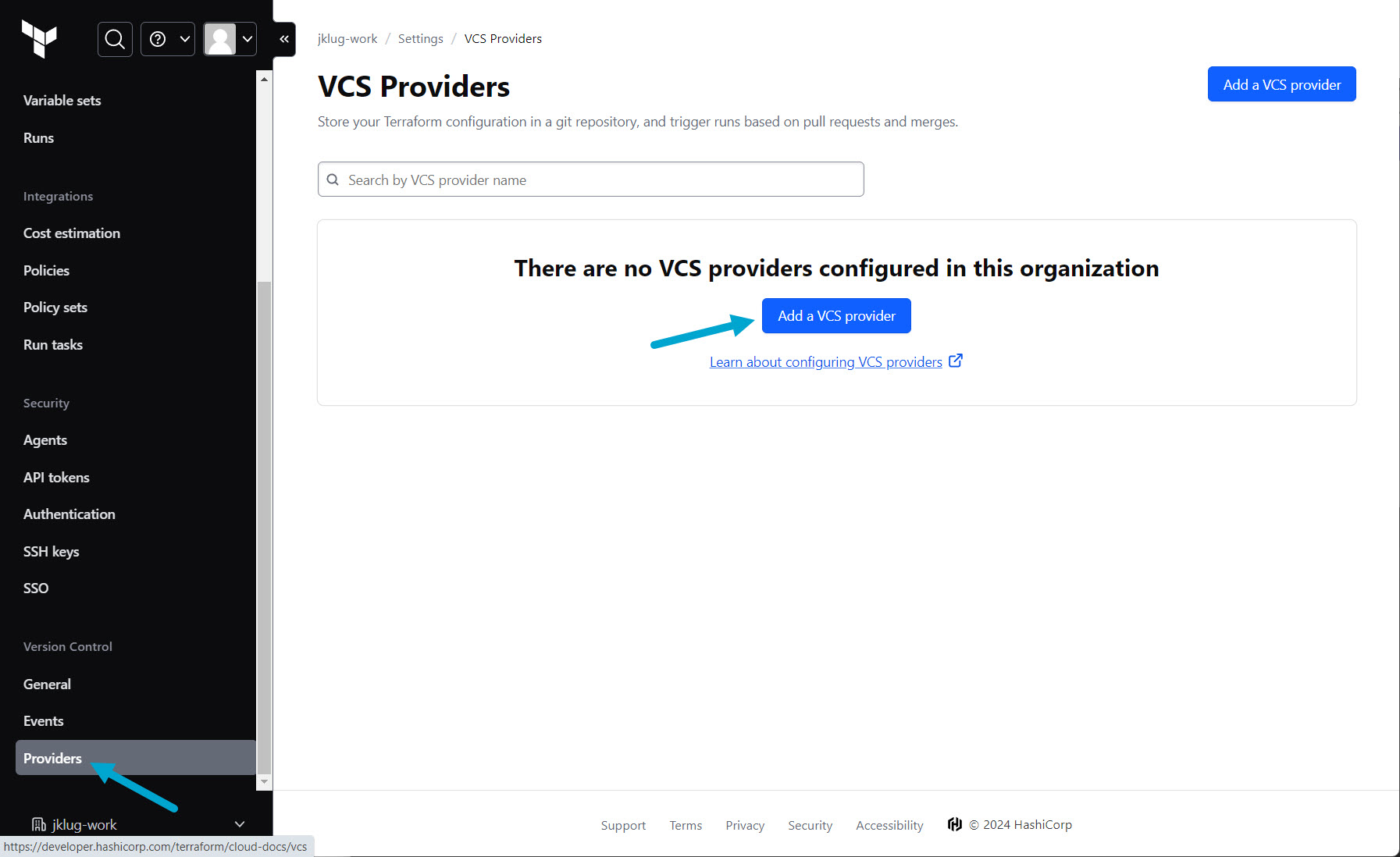 Click Add a VCS provider