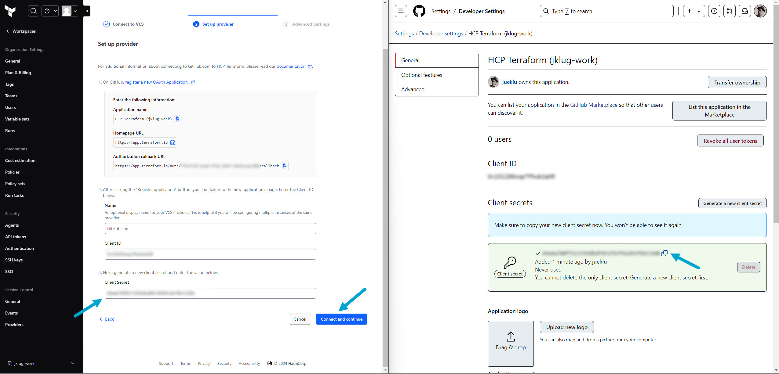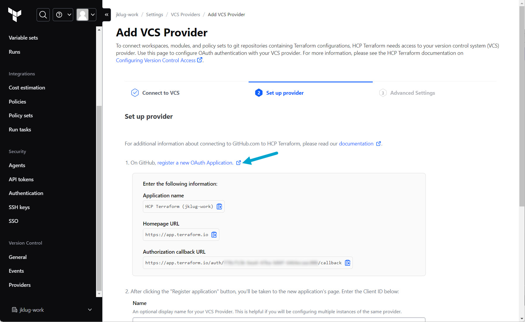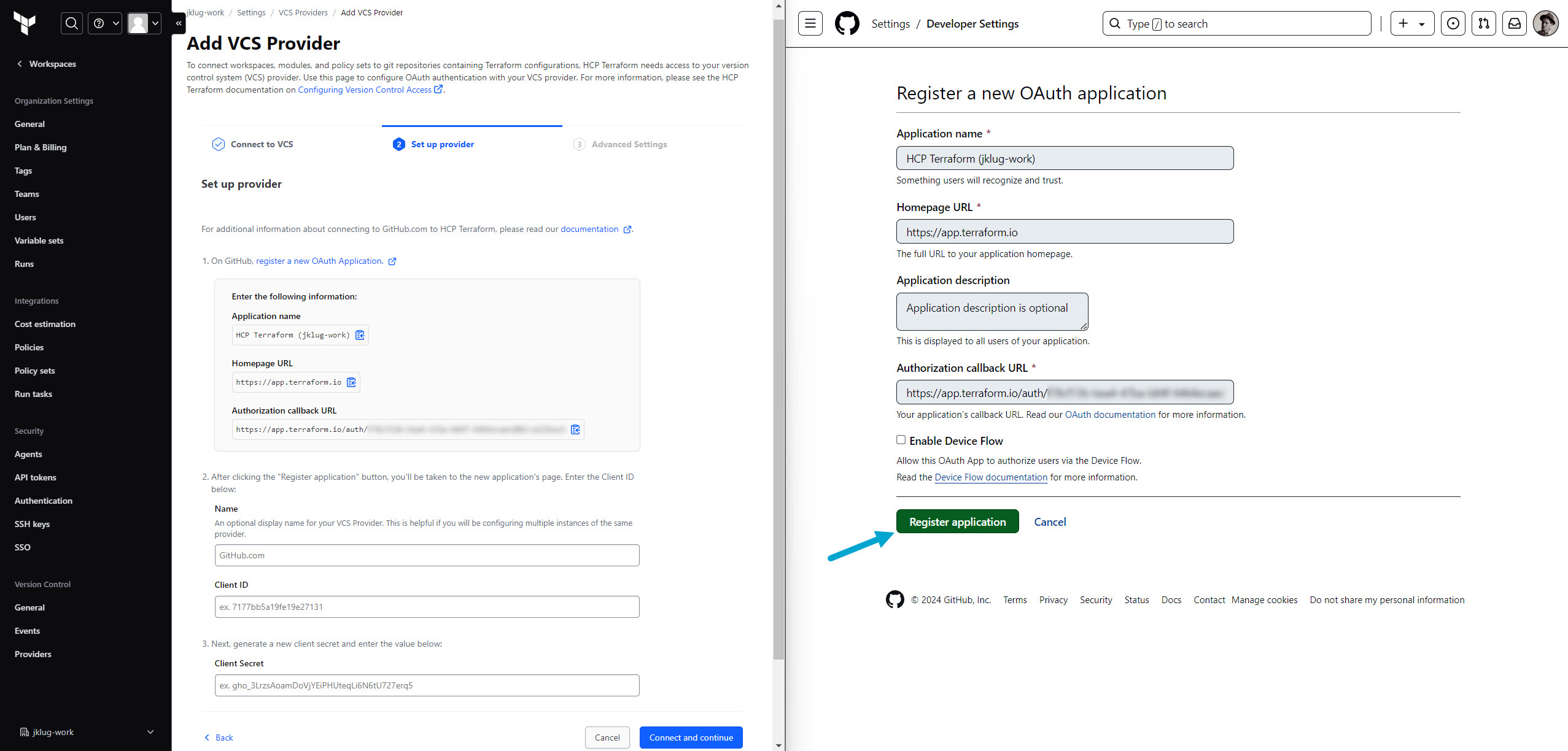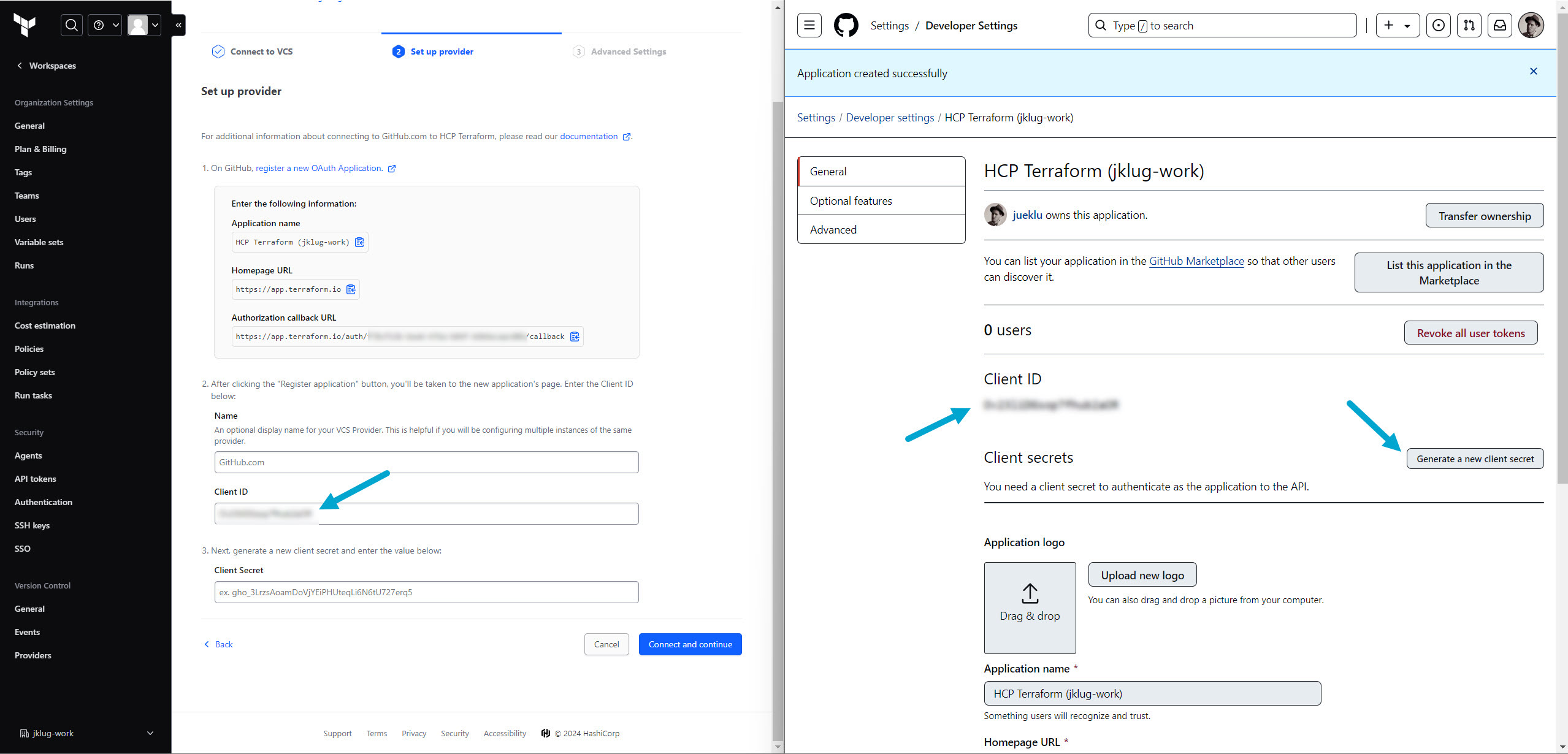 Copy the GitHub “Cliend ID” to Terraform Cloud
