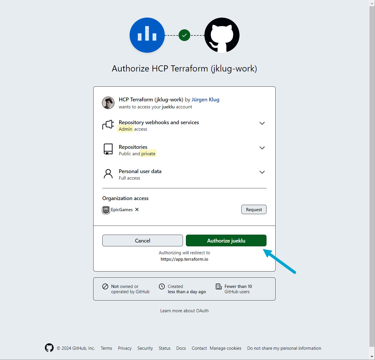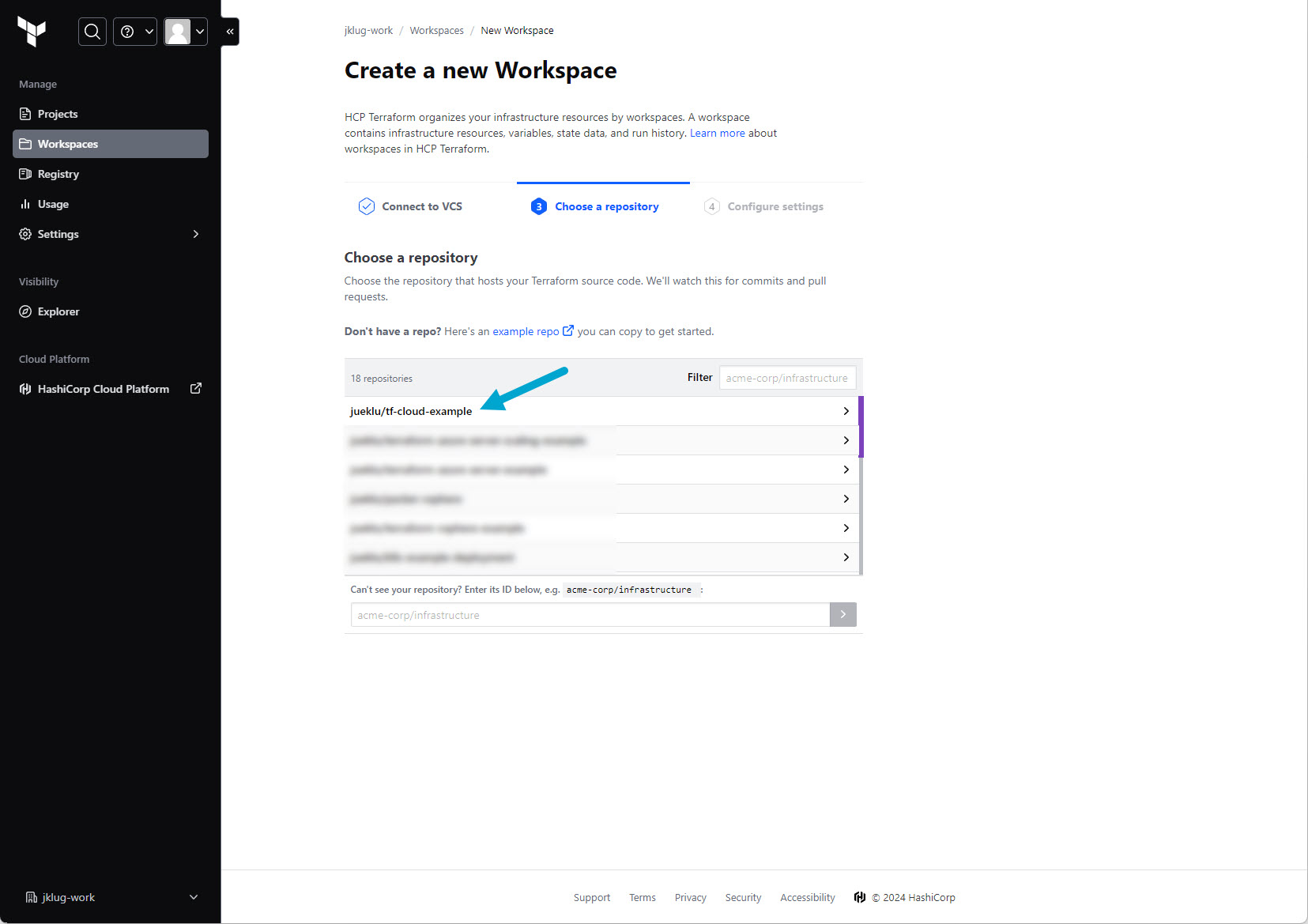 I’m using my GitHub repository named tf-cloud-example.