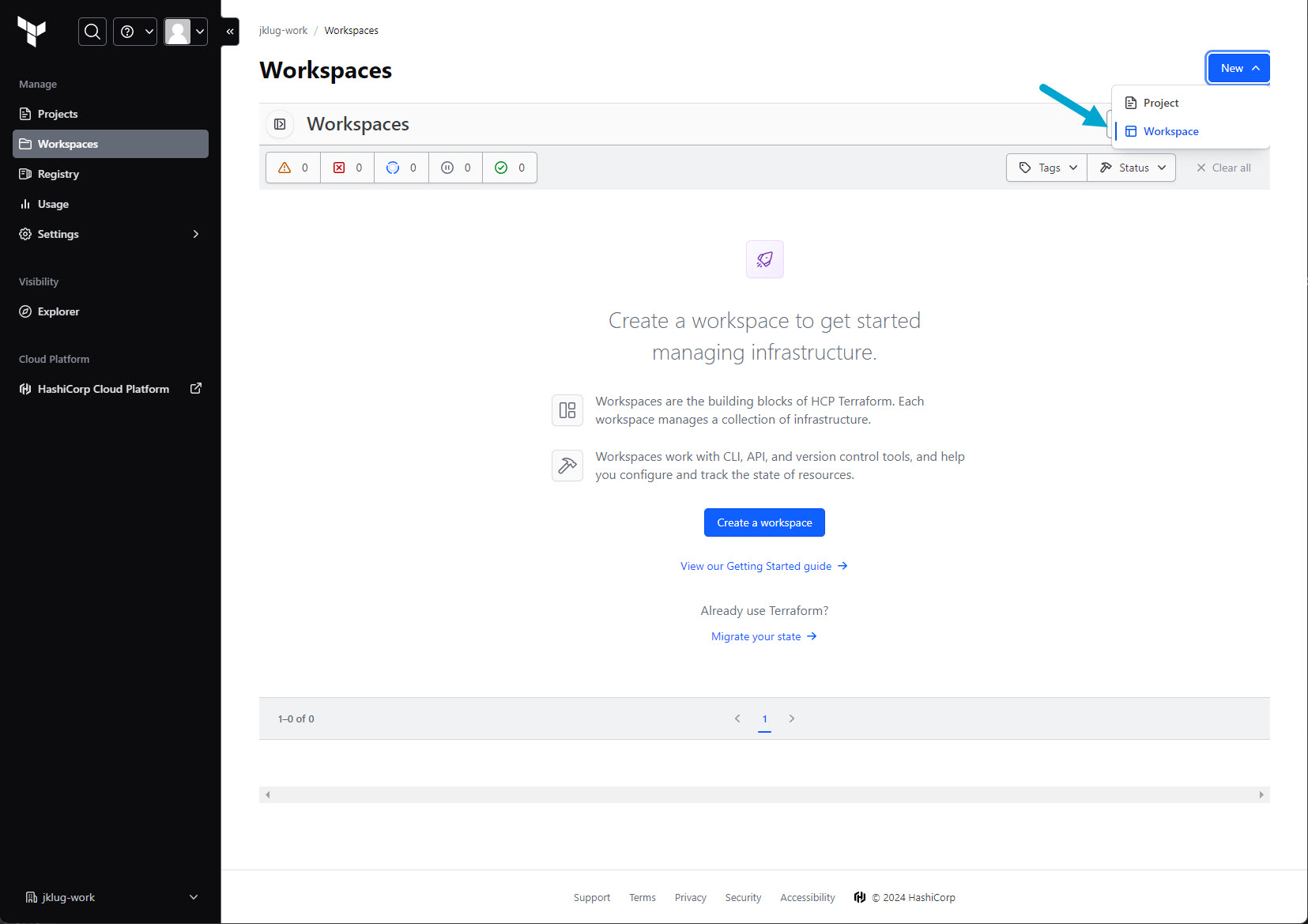 - Click “New” > “Worksapace”