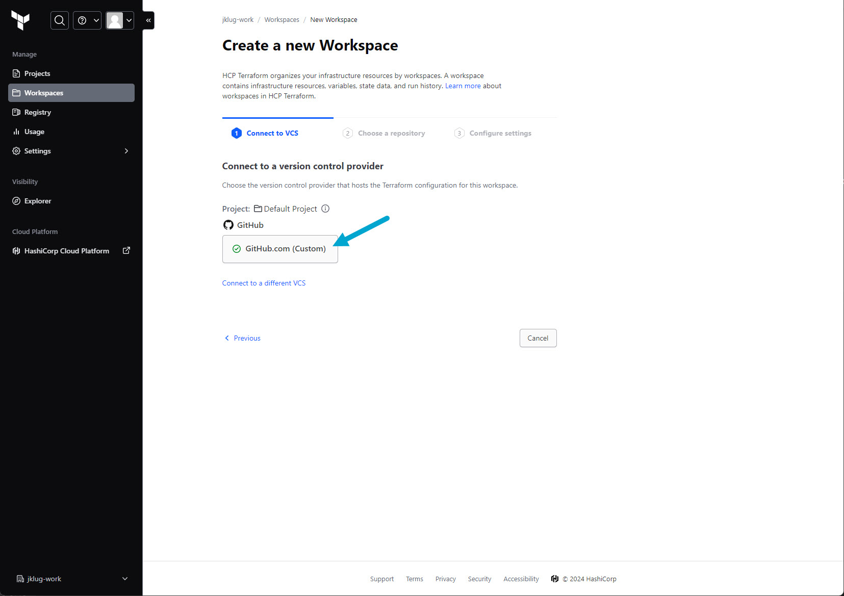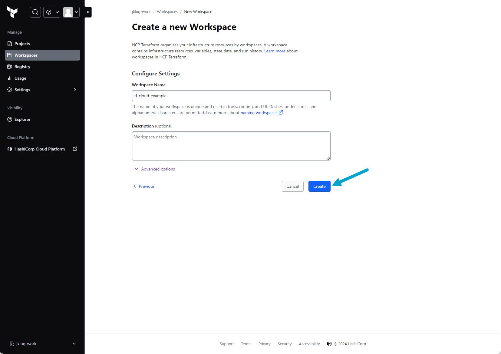 Define a workspace name (it defaults to the GitHub repository name)