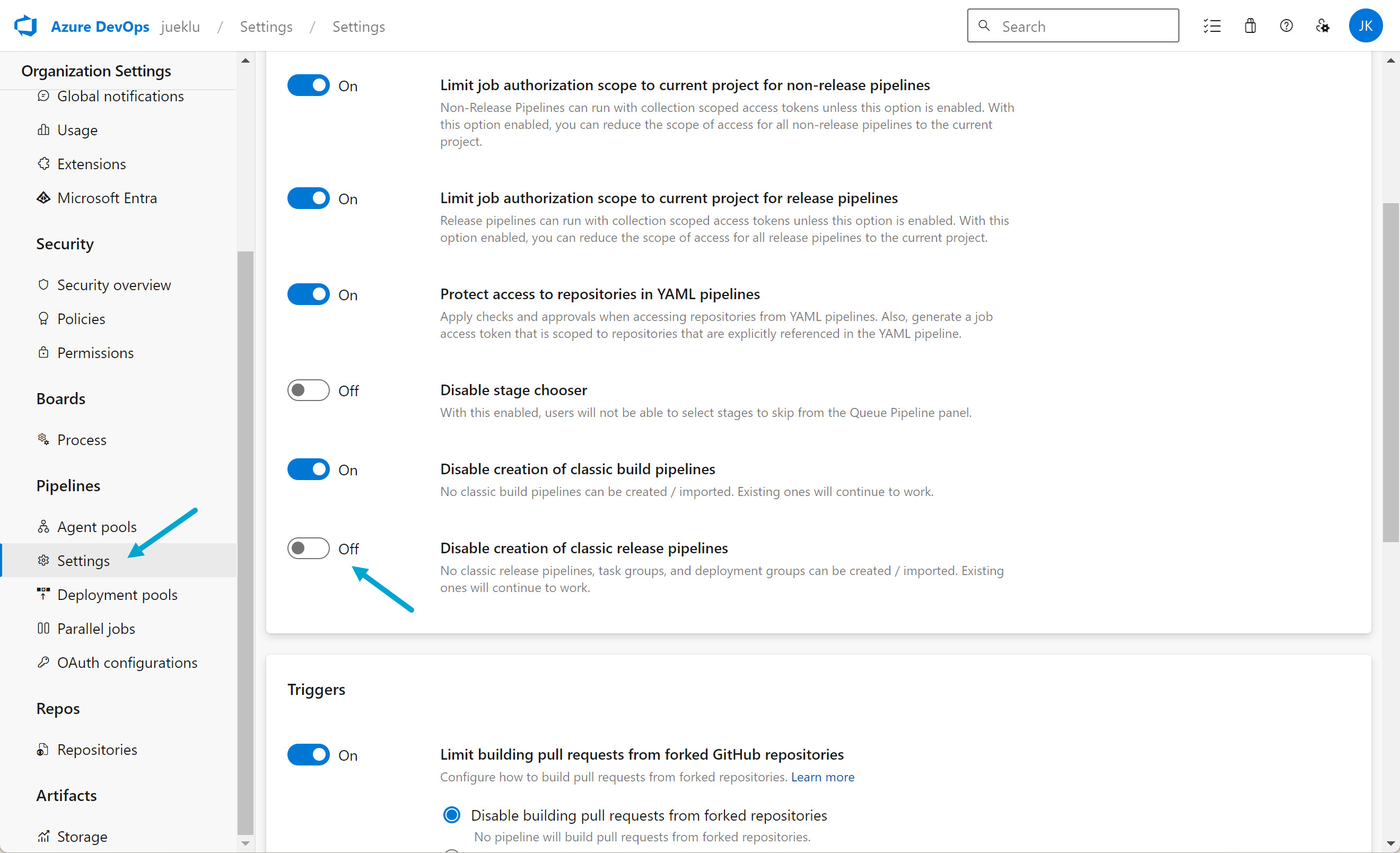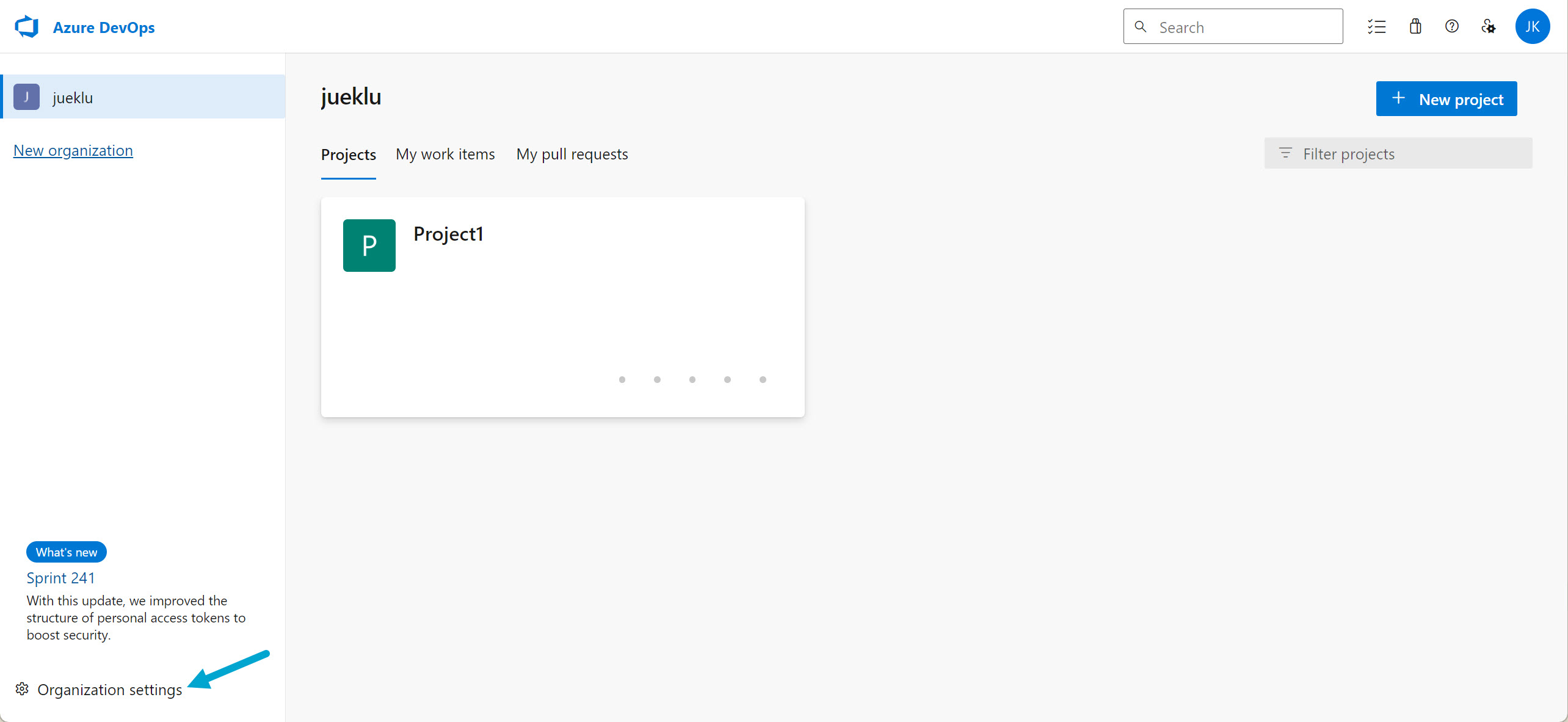 Open the organization dashboard: https://dev.azure.com/jueklu