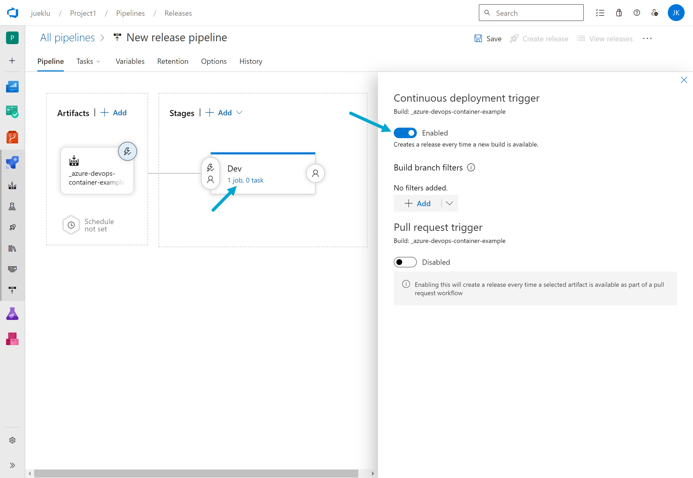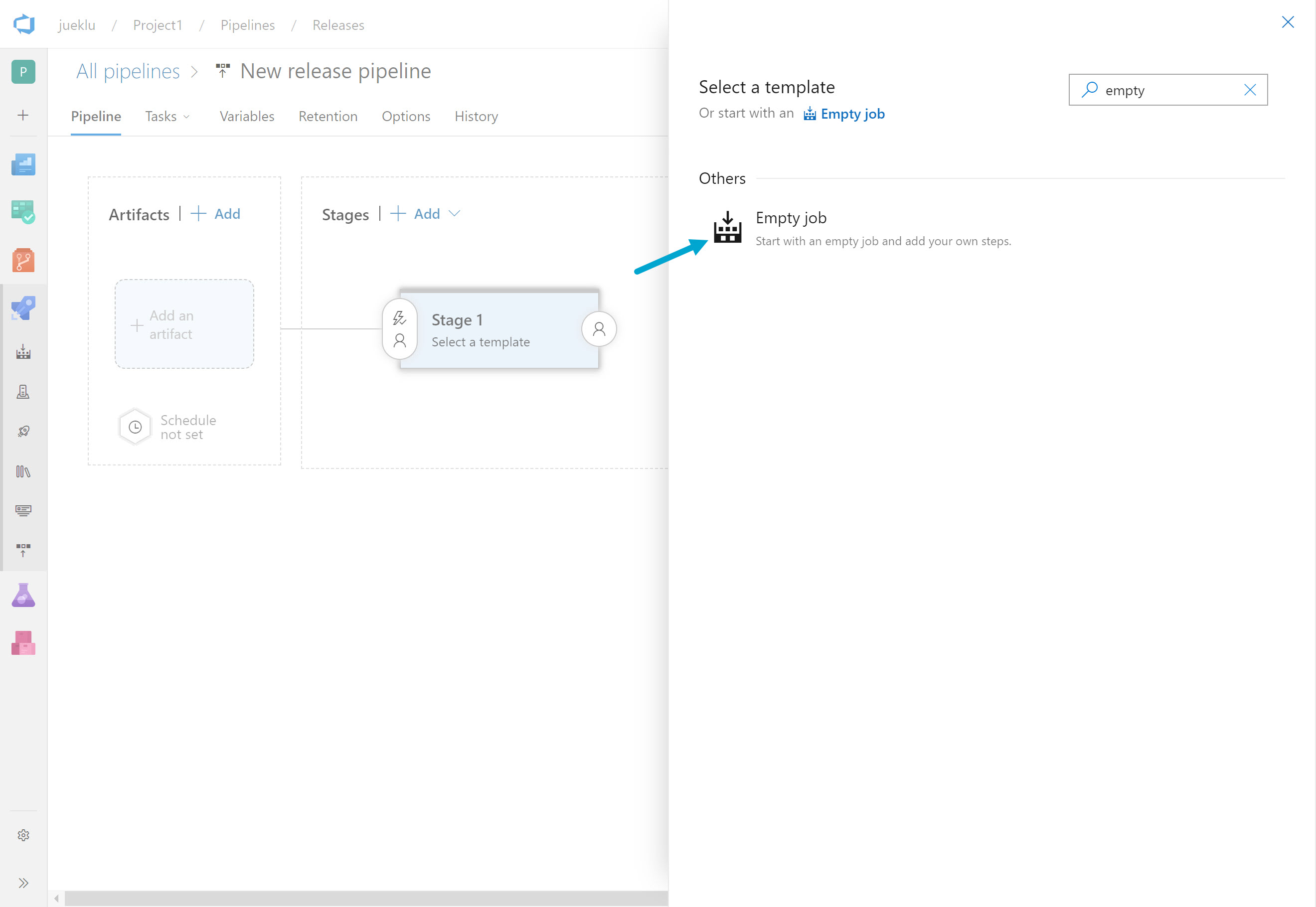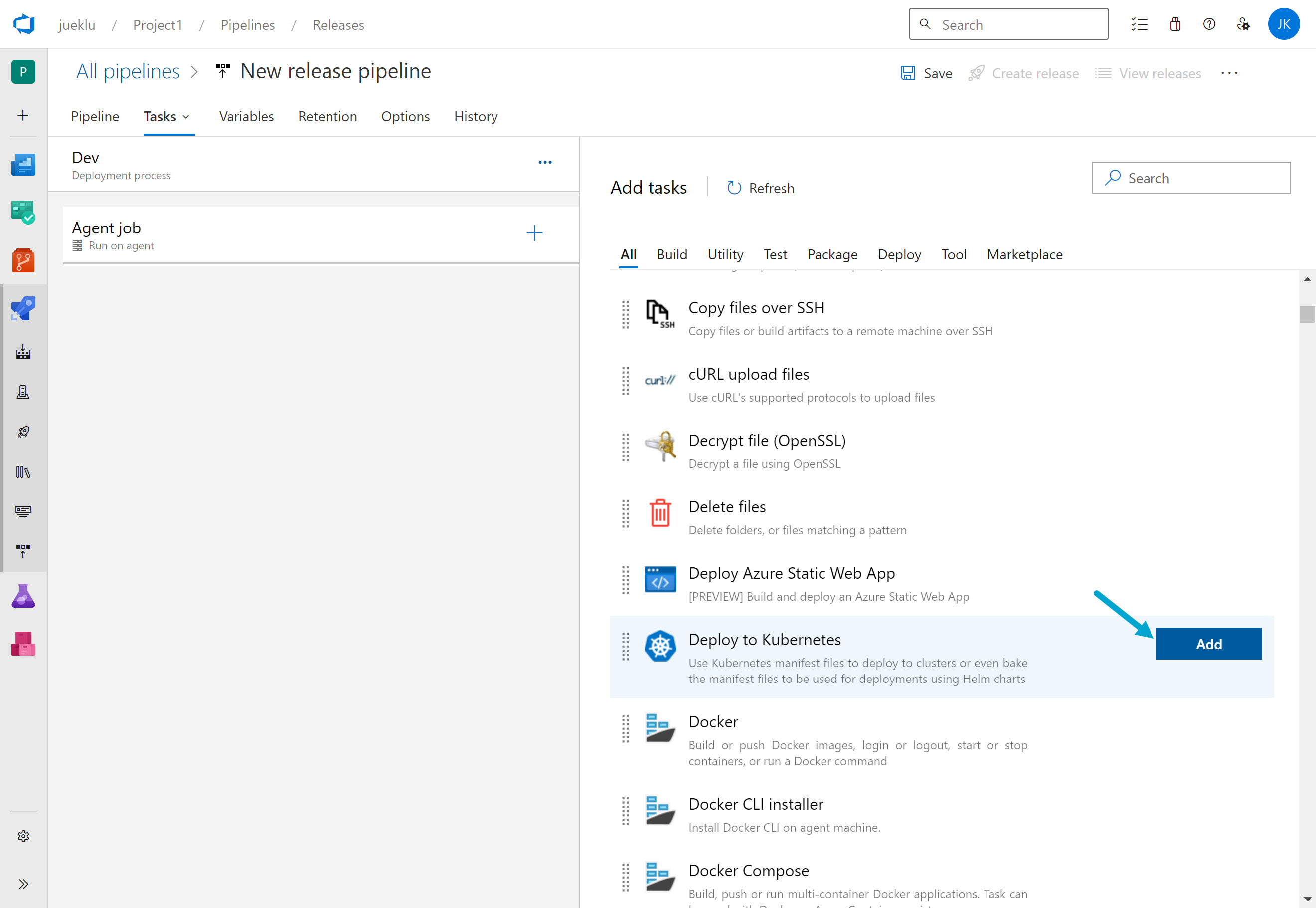 Open the project dashboard: https://dev.azure.com/jueklu/Project1