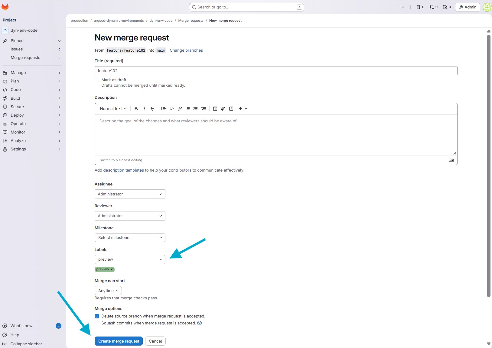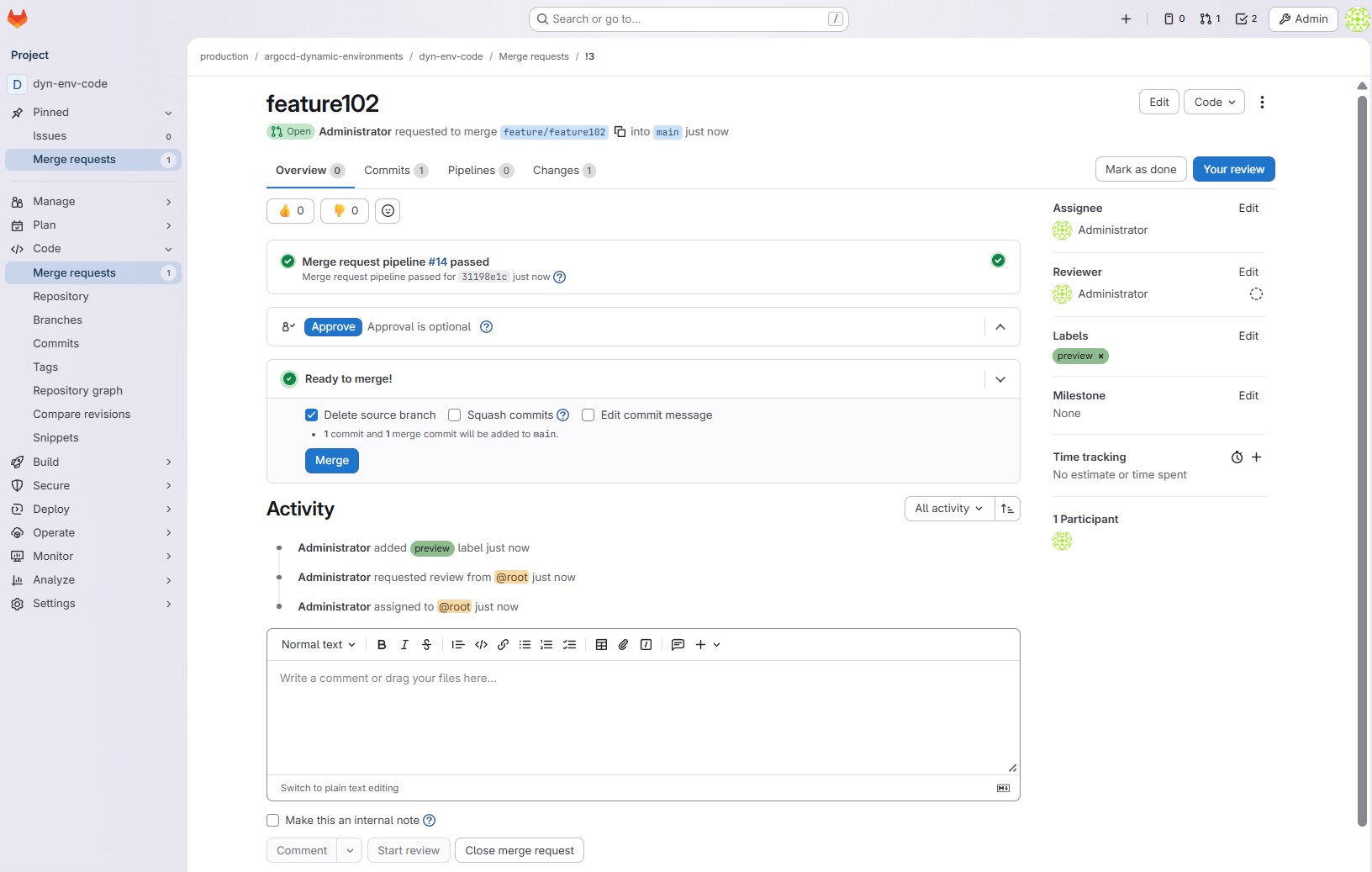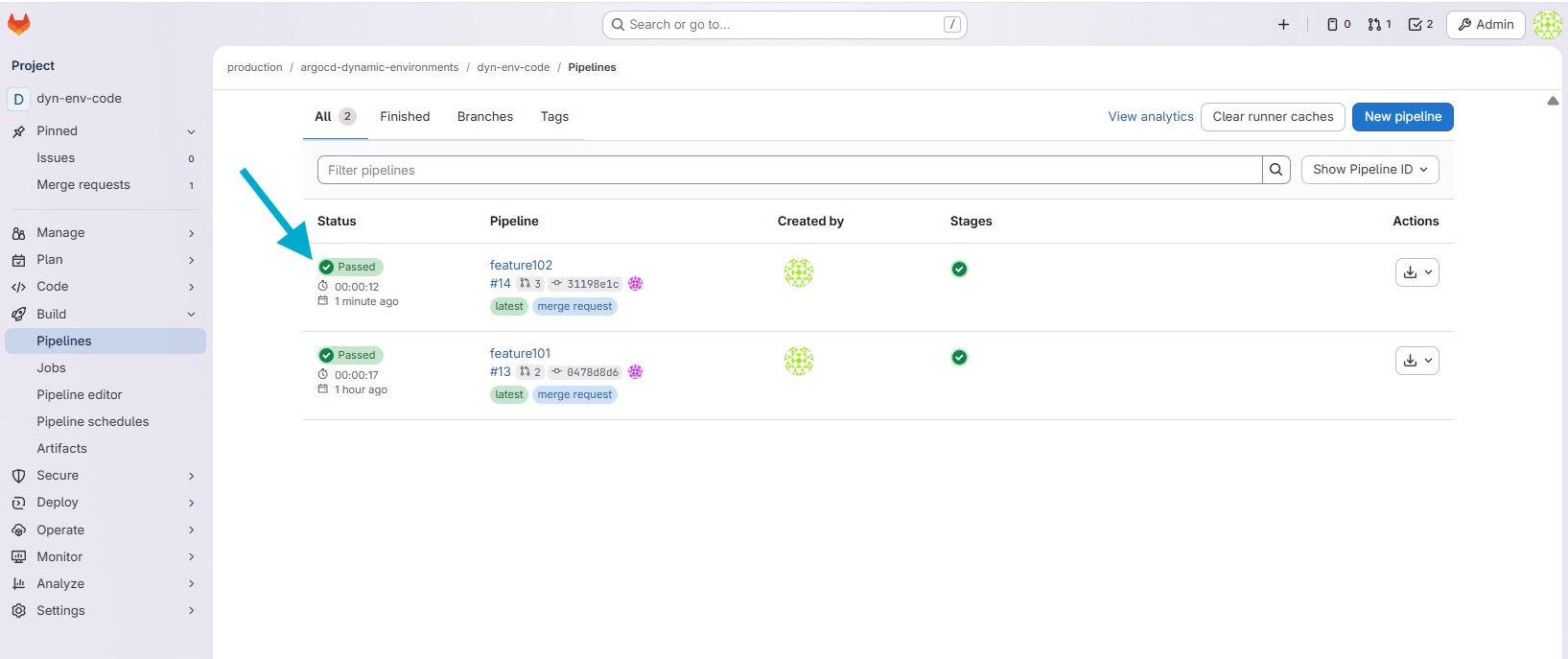 After the merge request was merged or closed, Argo CD automatically removes the application.
