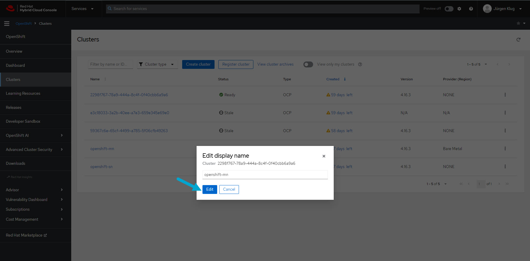 Rename the new cluster