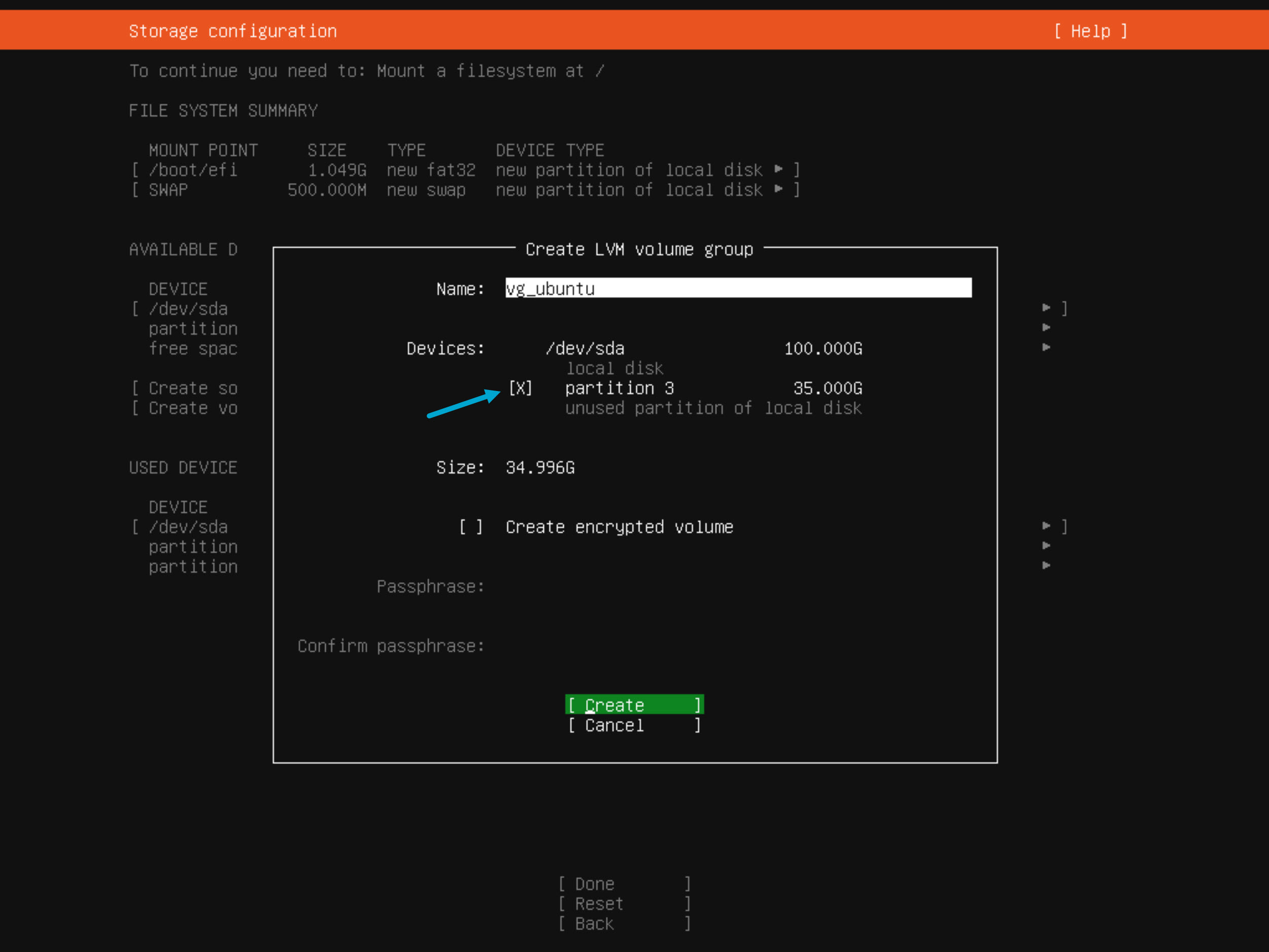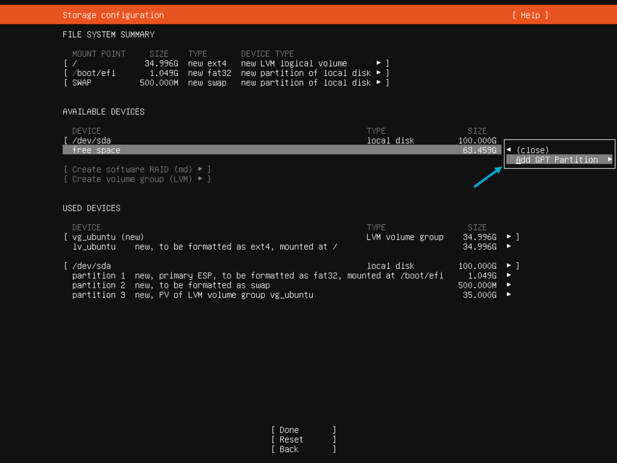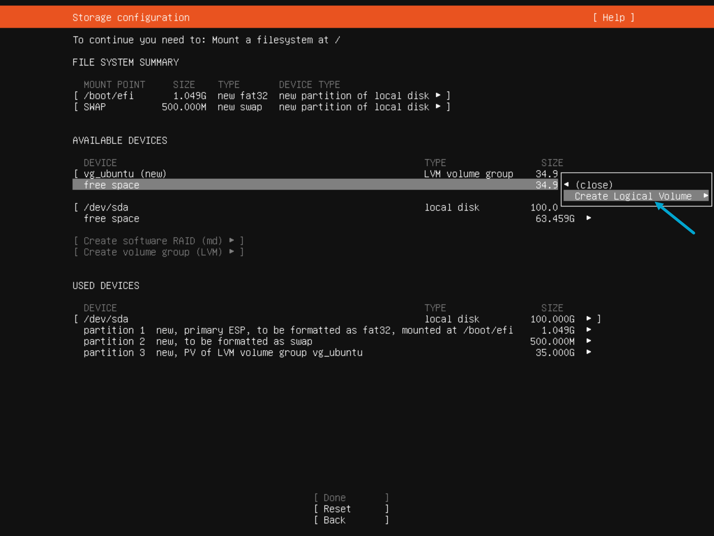 │ └─vg_ubuntu-lv_ubuntu 253:0 0 35G 0 lvm /