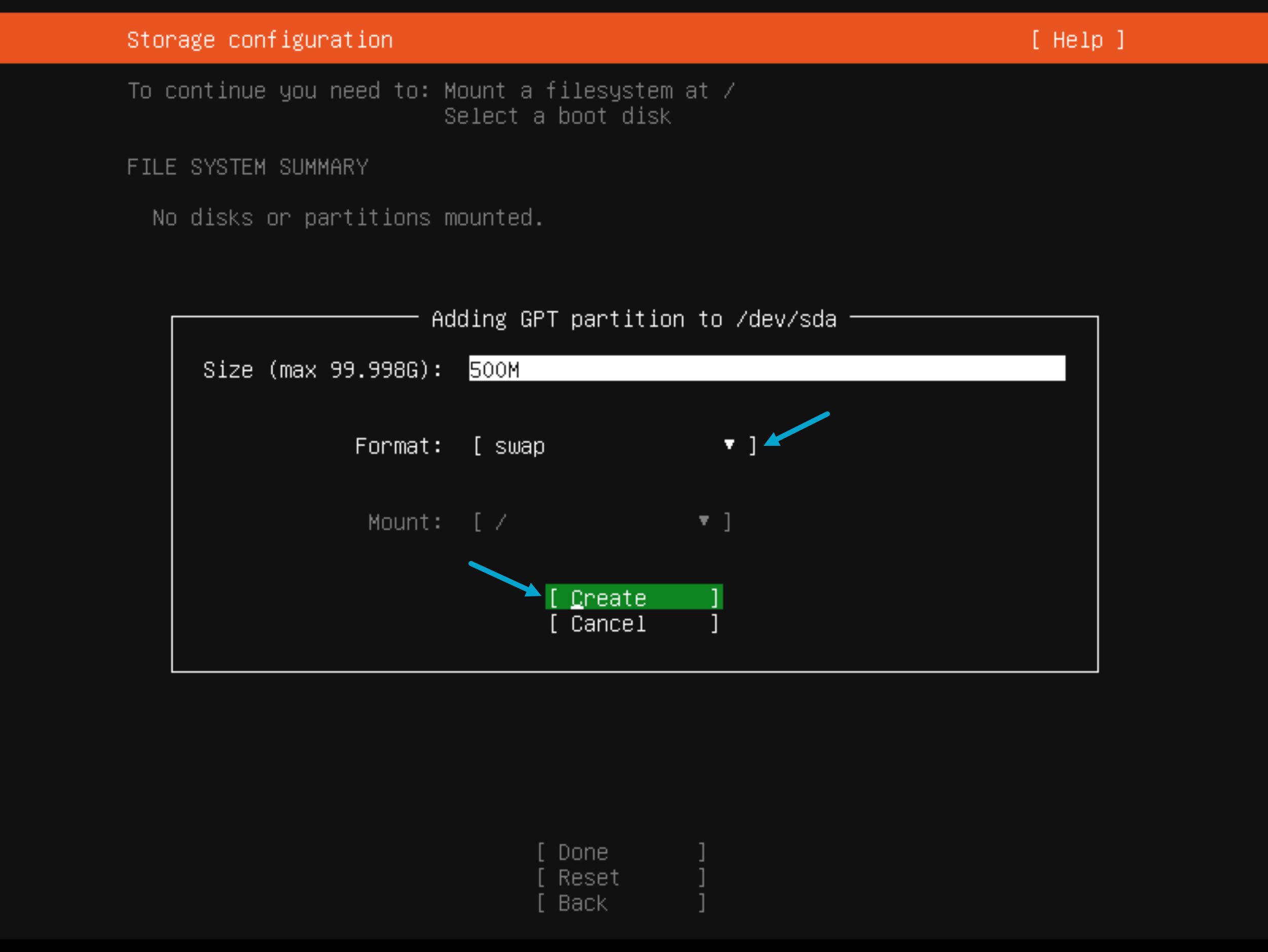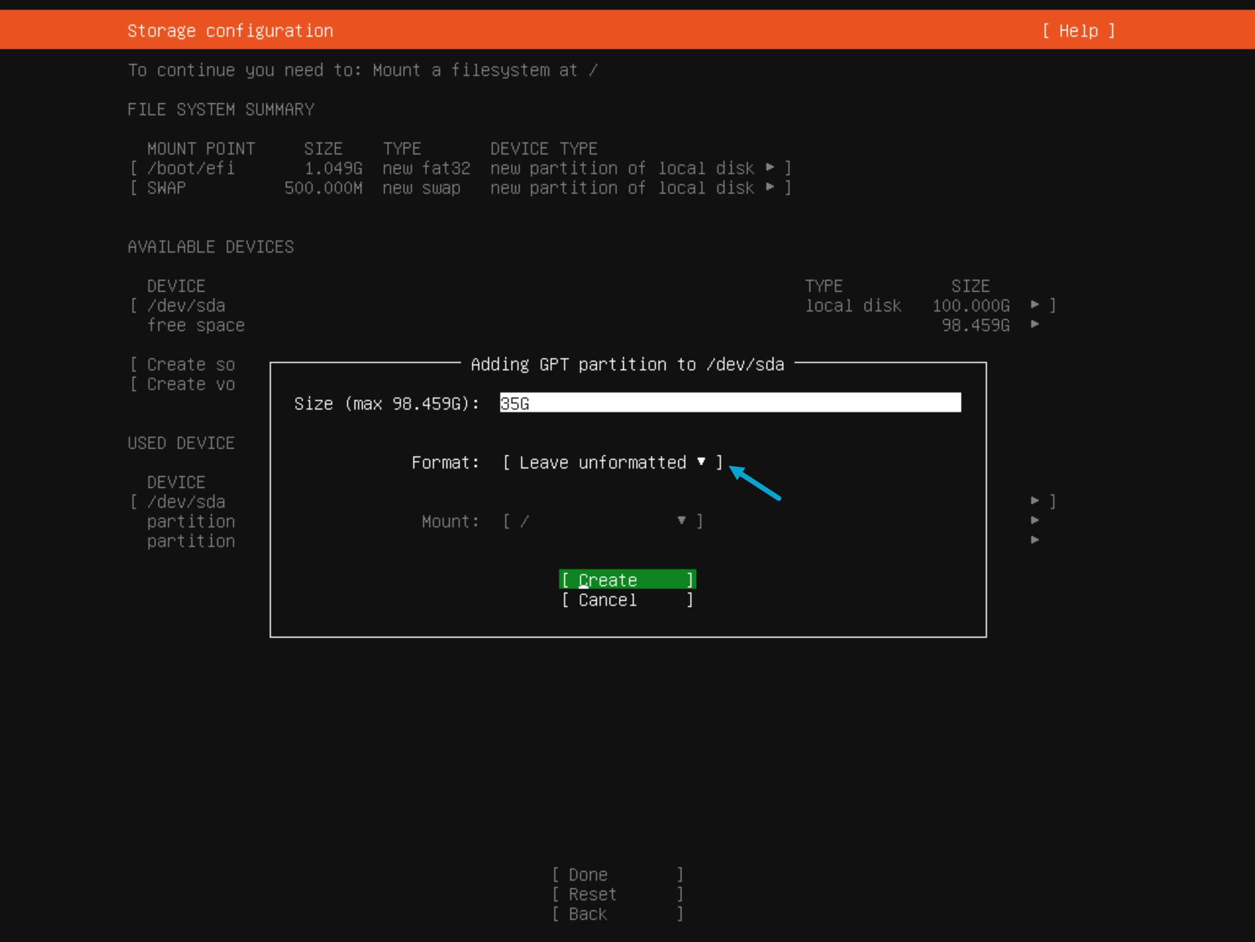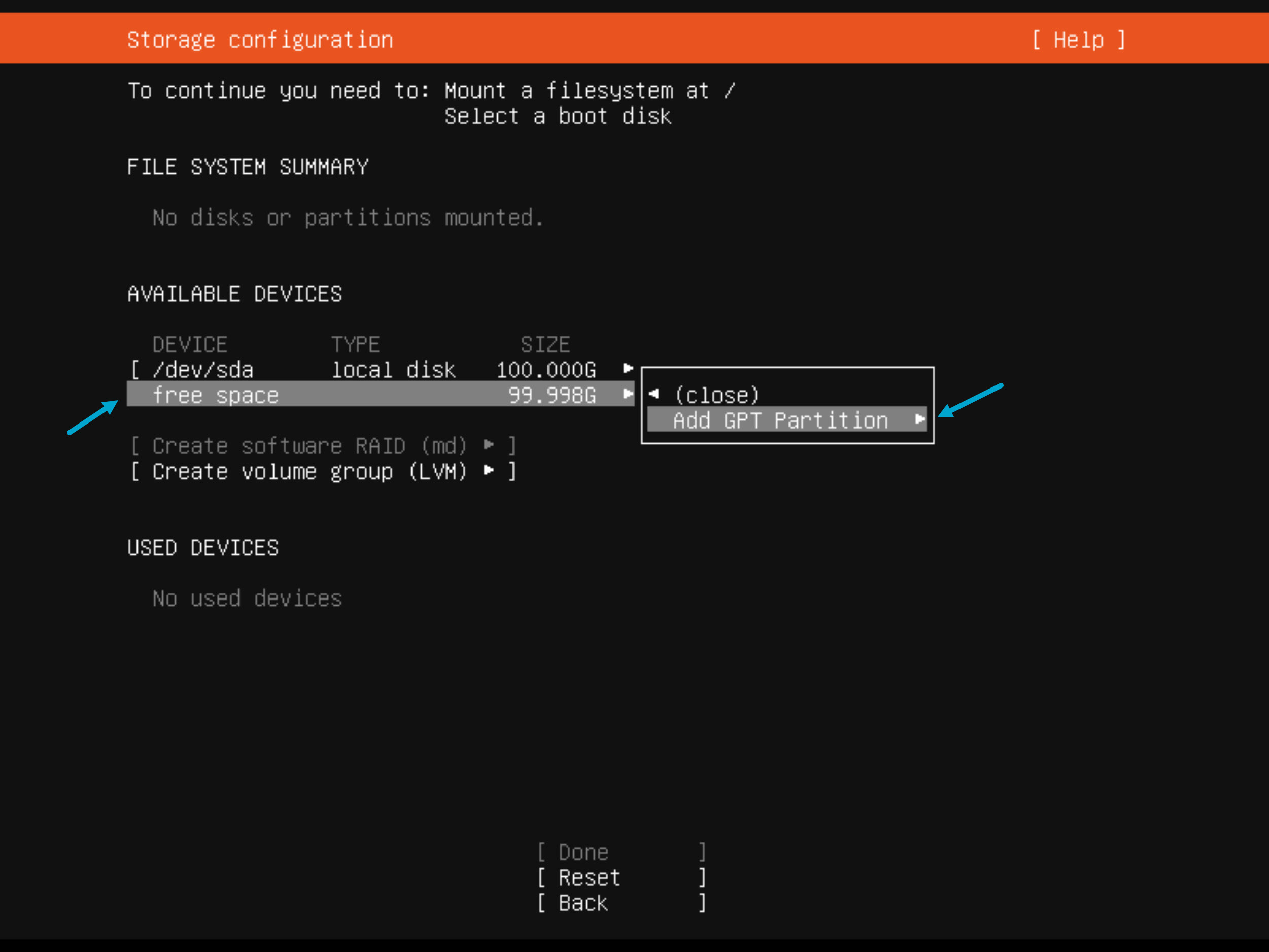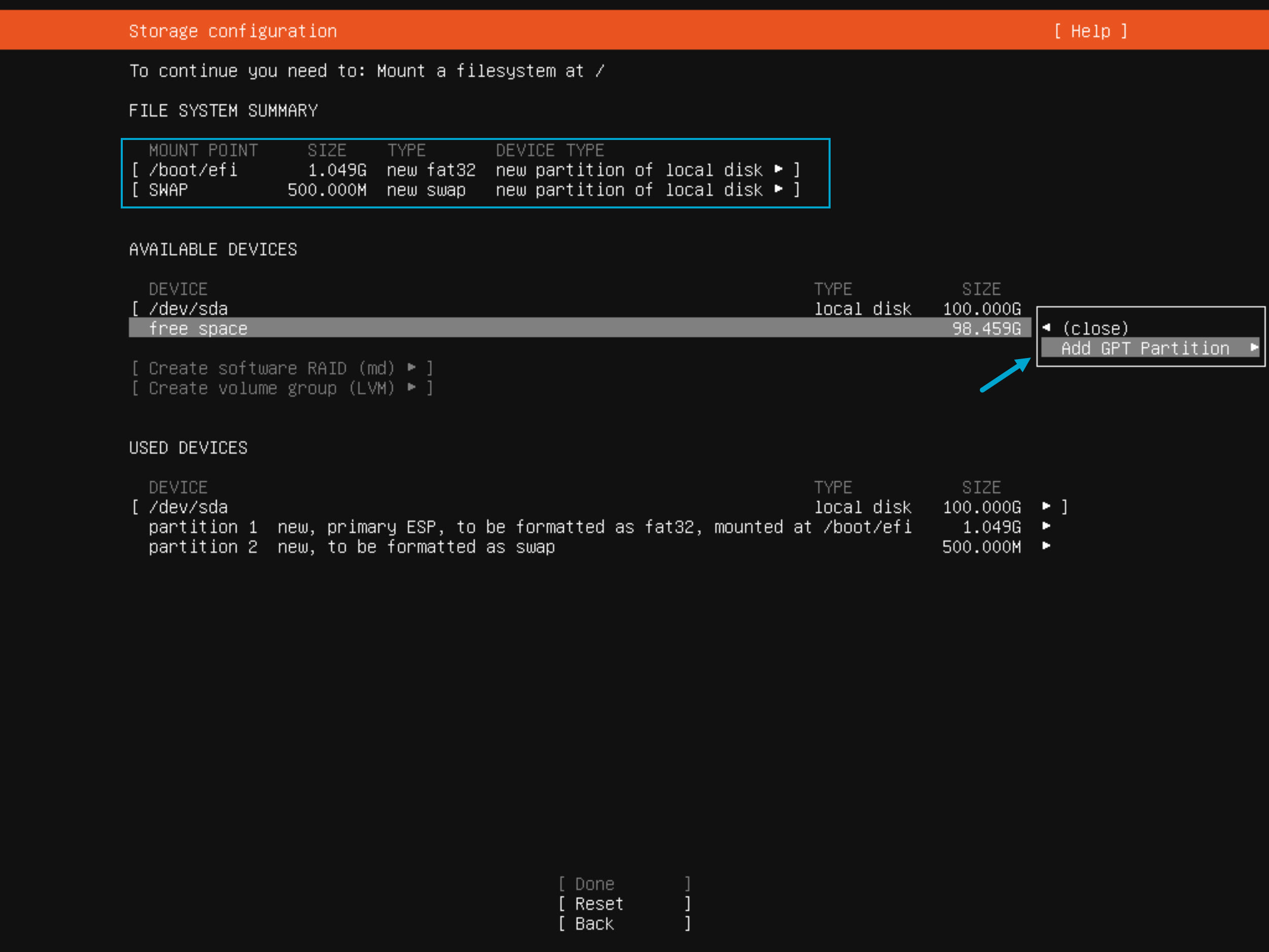 Note: The Setup Wizard automatically creates the /boot/efi partition