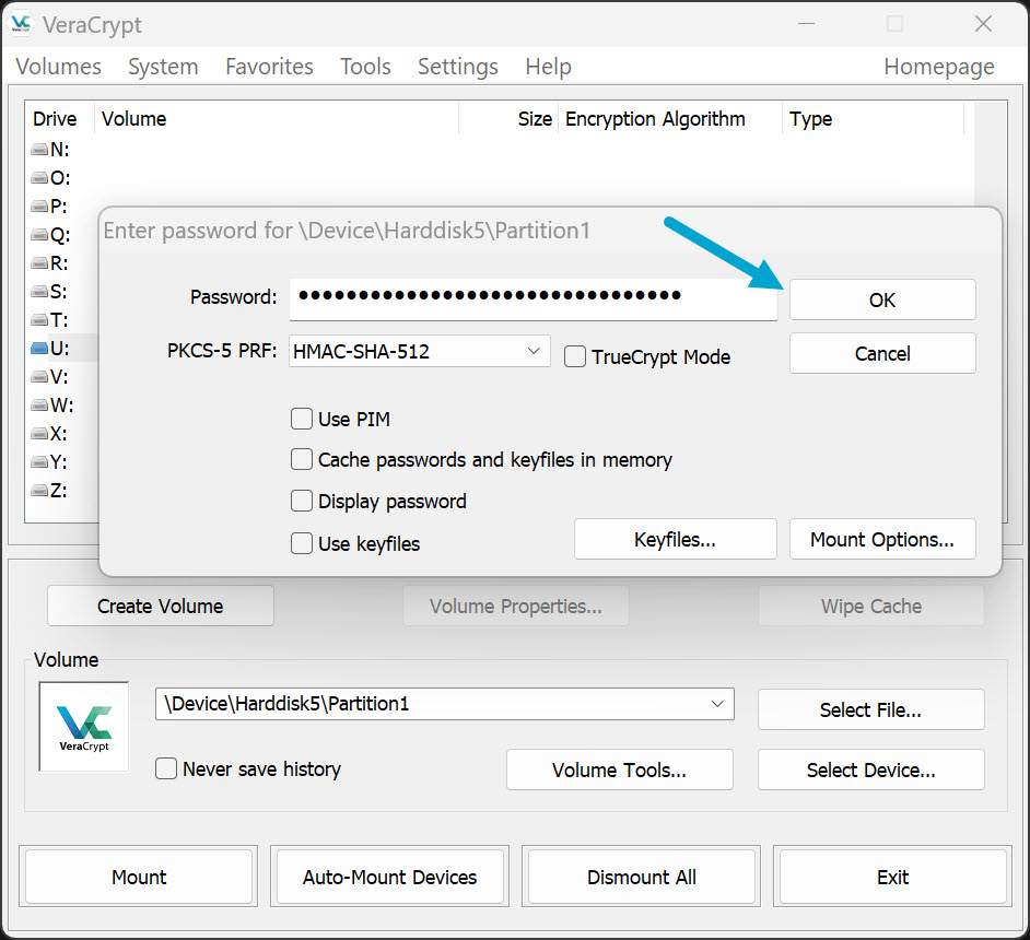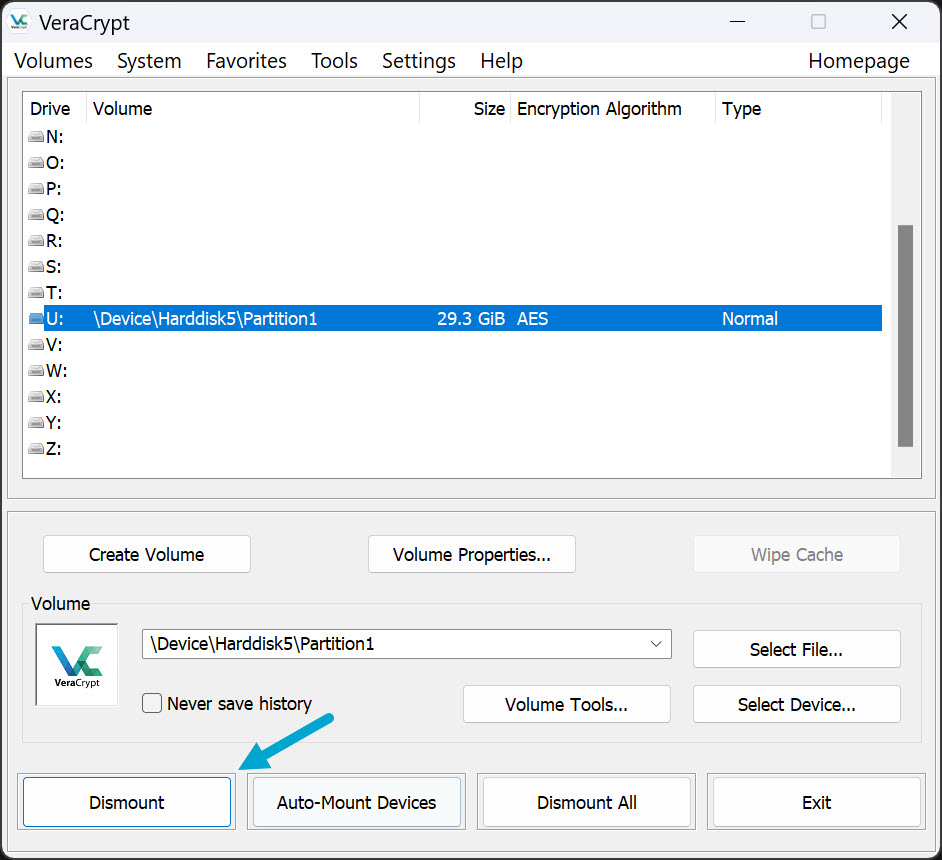 HiddenA hidden volume resides inside a normal VeraCrypt volume in such a way that it’s impossible to prove the hidden volume exists.