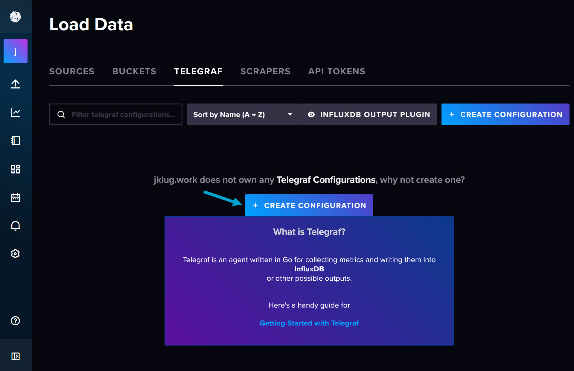 # Create new Telegraf configuration
