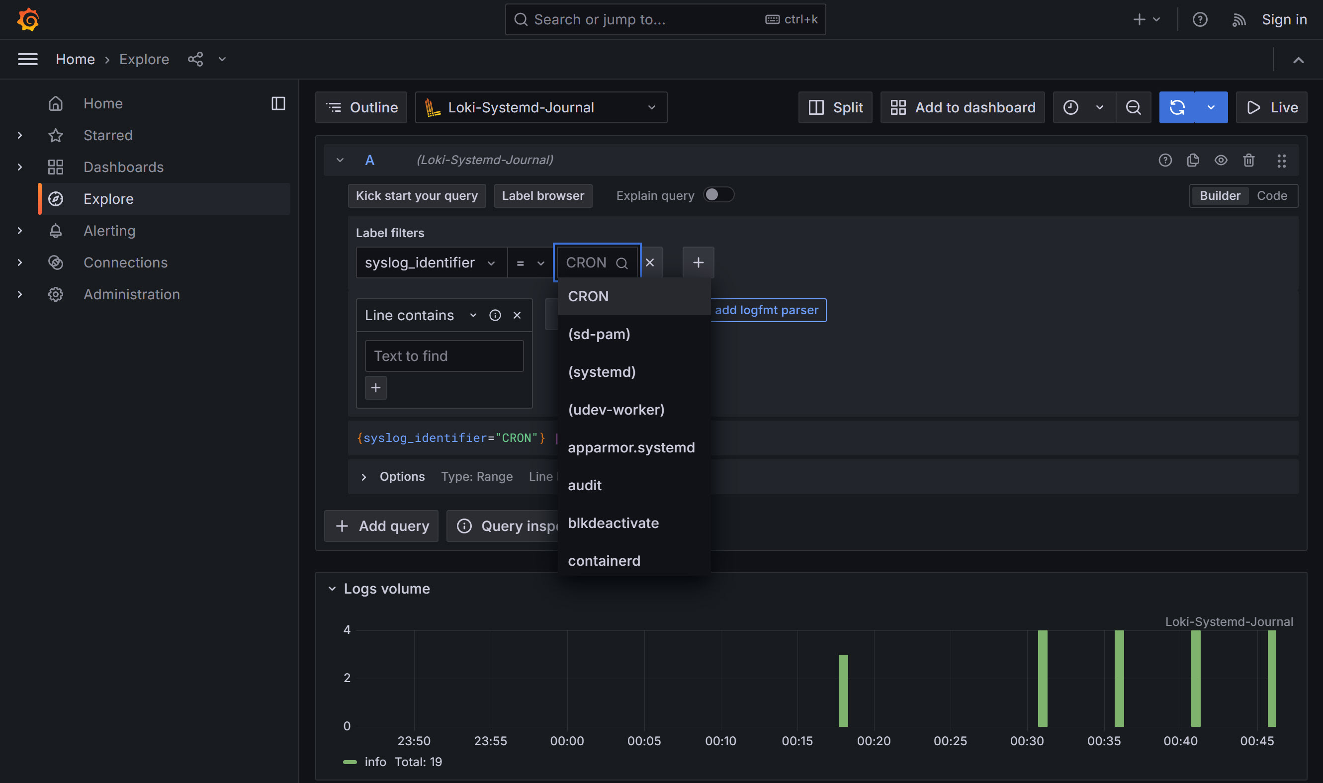 Since the different Promtail configuration for containers, /var/log and systemd journal produce different labels, I have deployed 3 Loki instances in the Docker Compose stacks, so that I can use different data sources for each Promtail configuration type.