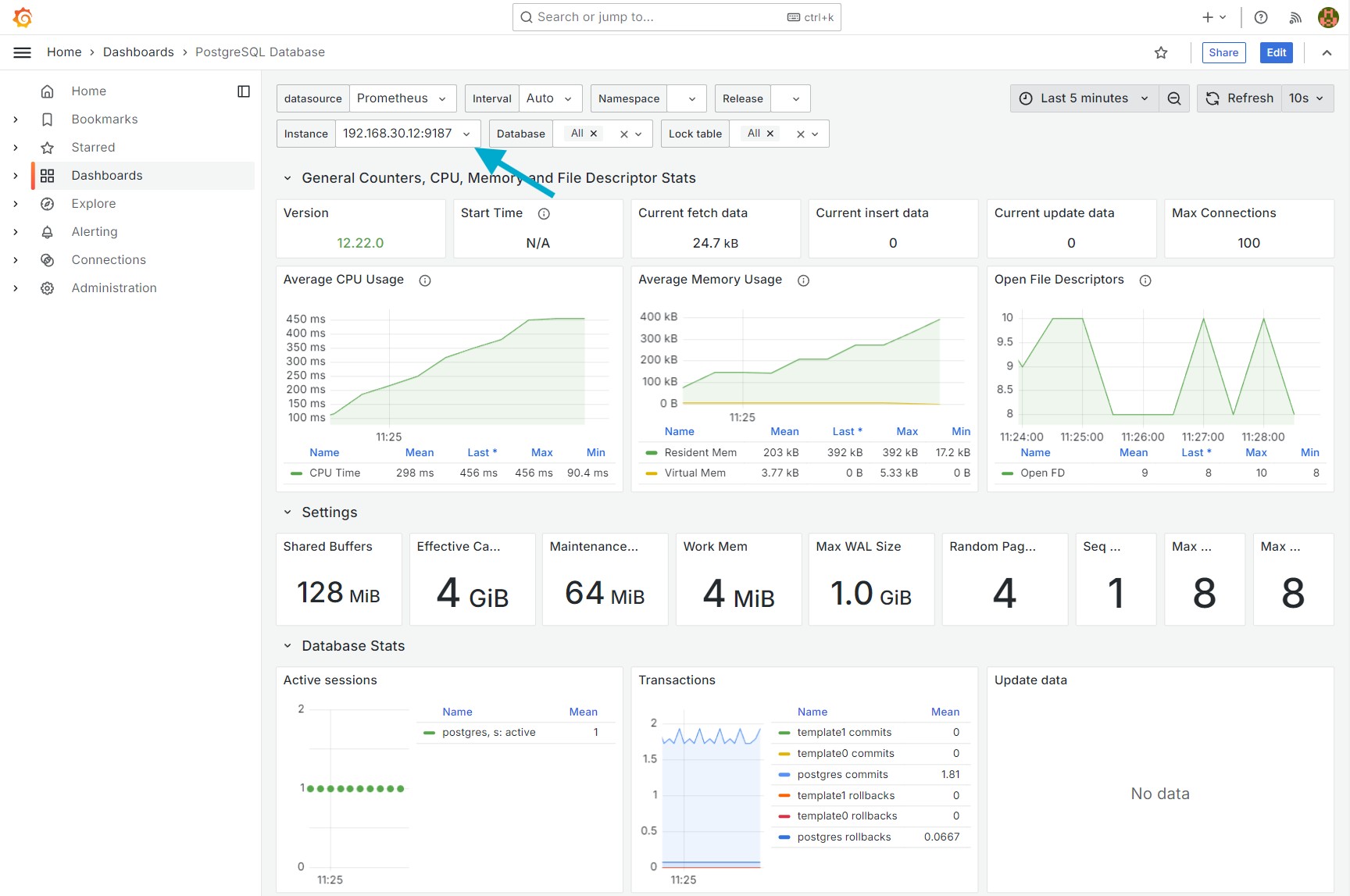 Import the “Prometheus Postgres Exporter” Dashboard #