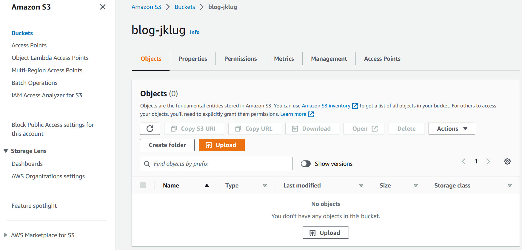 https://s3.console.aws.amazon.com/s3/buckets/blog-jklug/