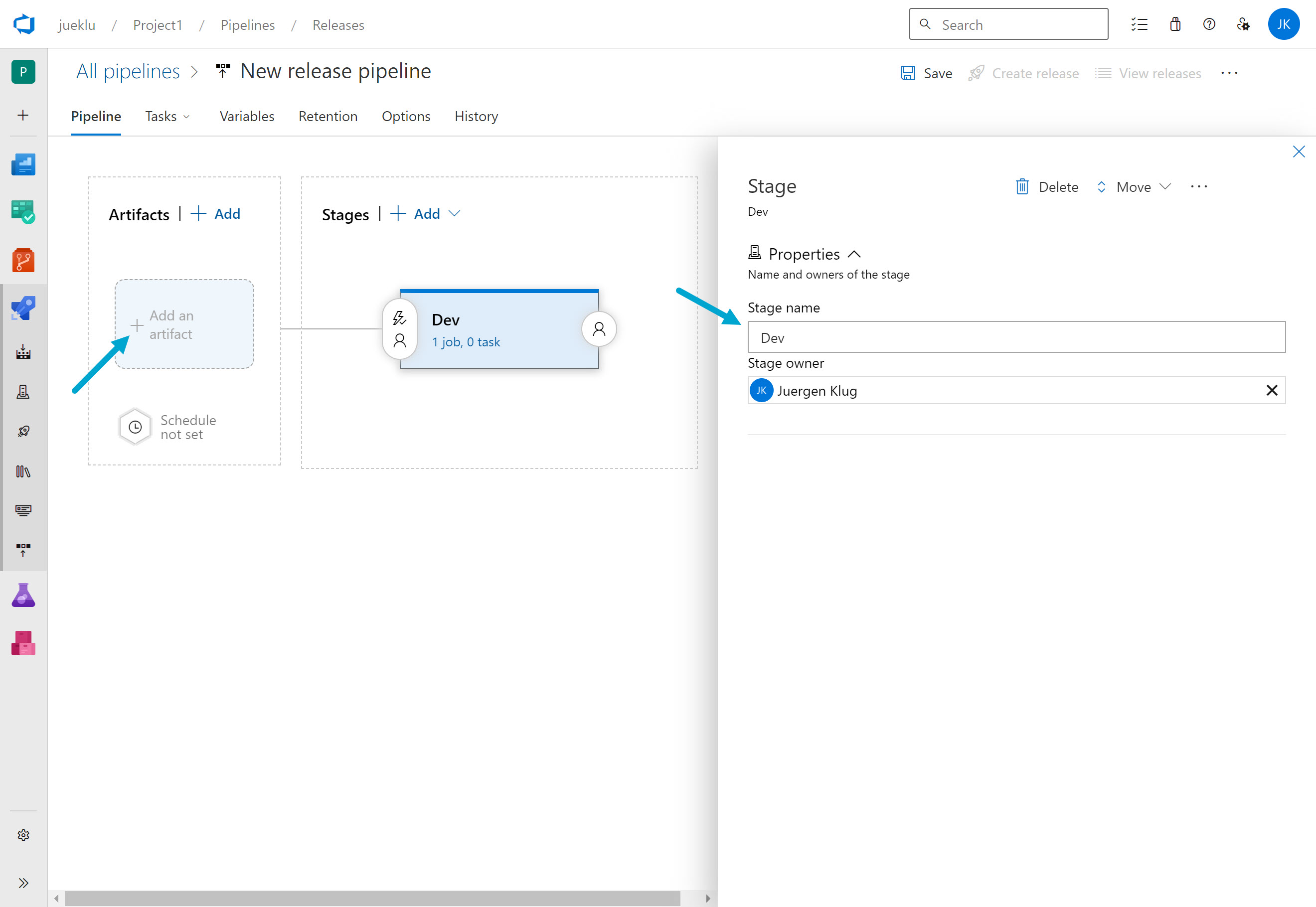 Open the project dashboard: https://dev.azure.com/jueklu/Project1