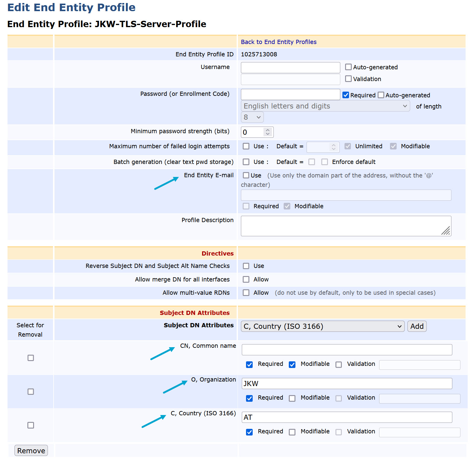 CN, Common name>Required&Modifiable -