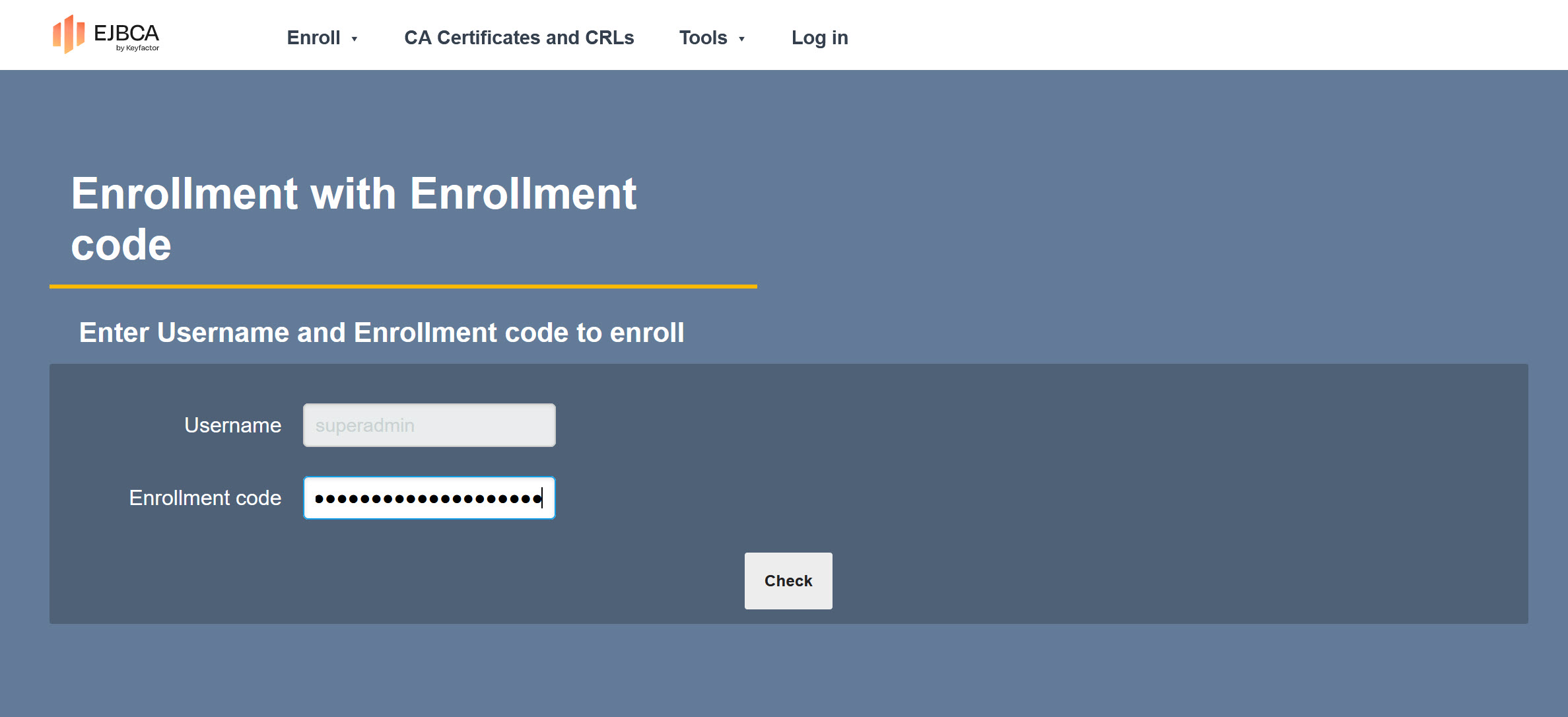https://192.168.30.91:443/ejbca/ra/enrollwithusername.xhtml?username=superadmin