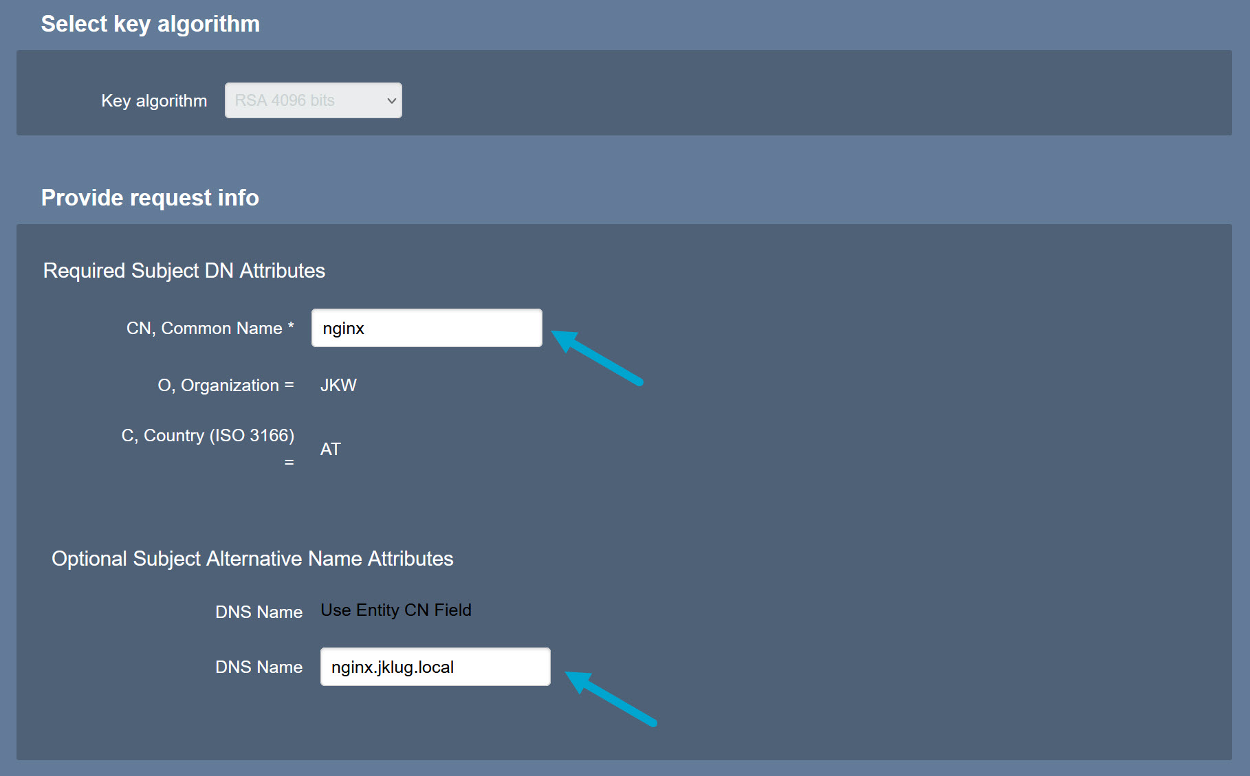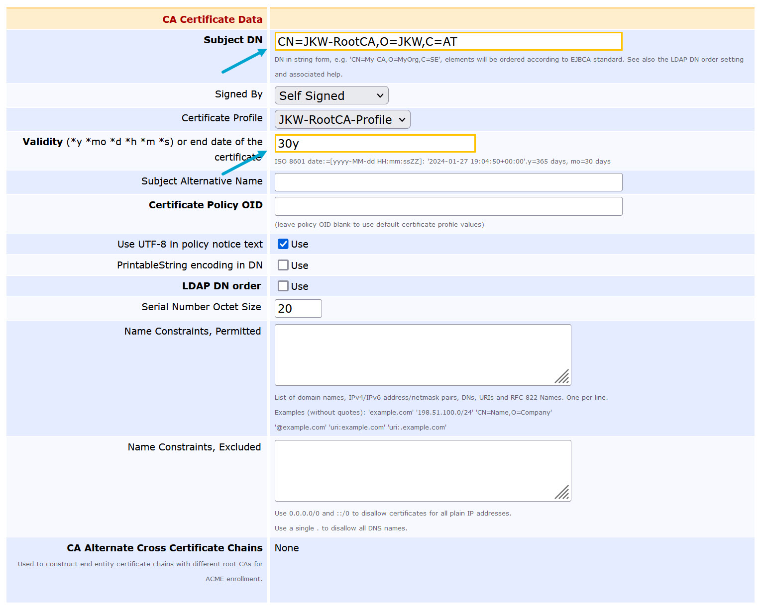 Define the CA: “JKW-Root-CA”