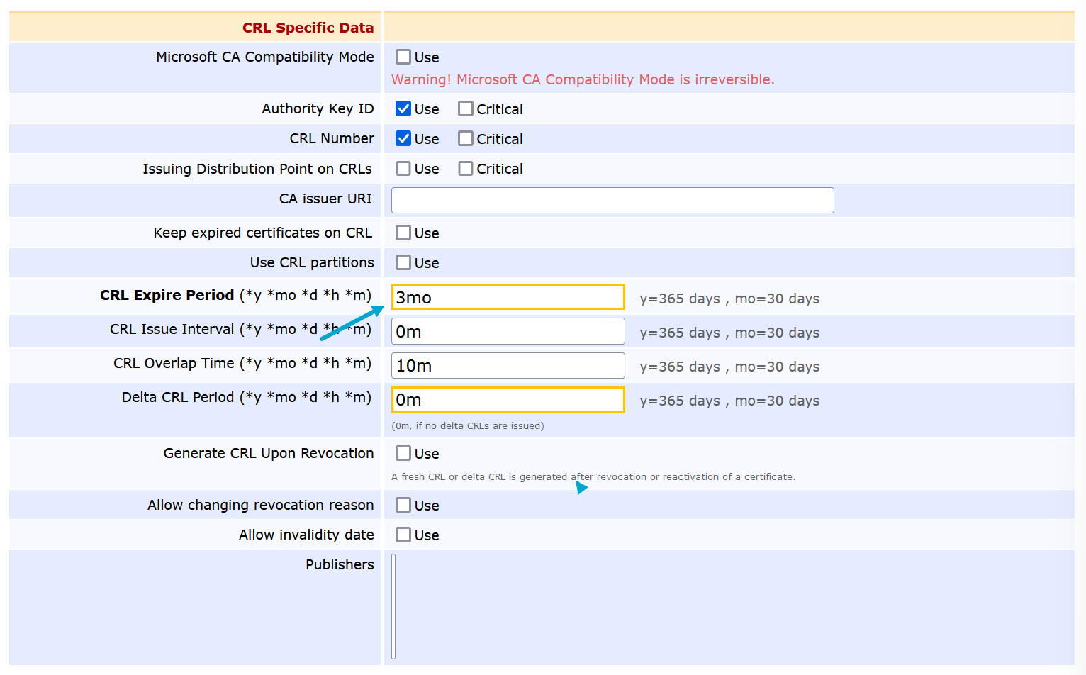 Use CA defined CRL Distribution Point>Use... -