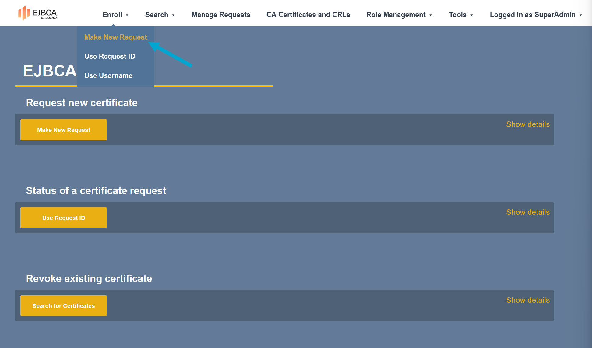 Enroll>Make New Request