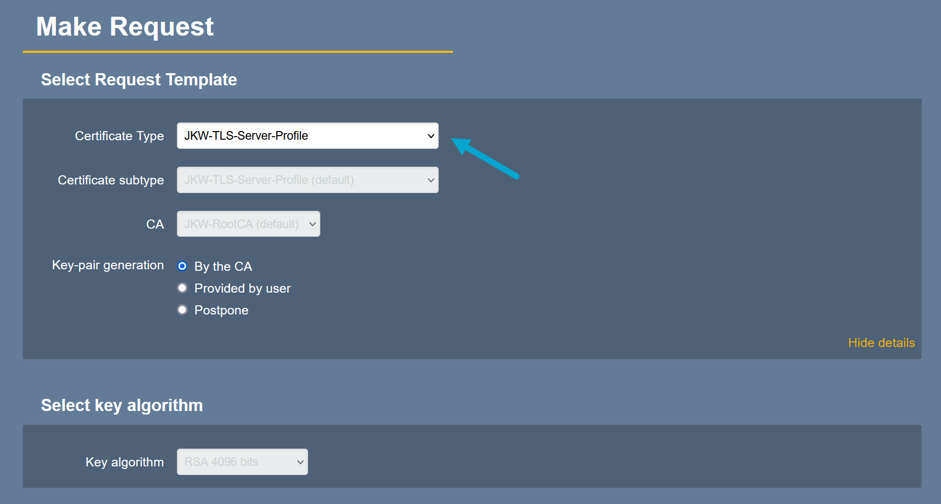 Available Certificate Profiles>JKW-TLS-Server-Profile -