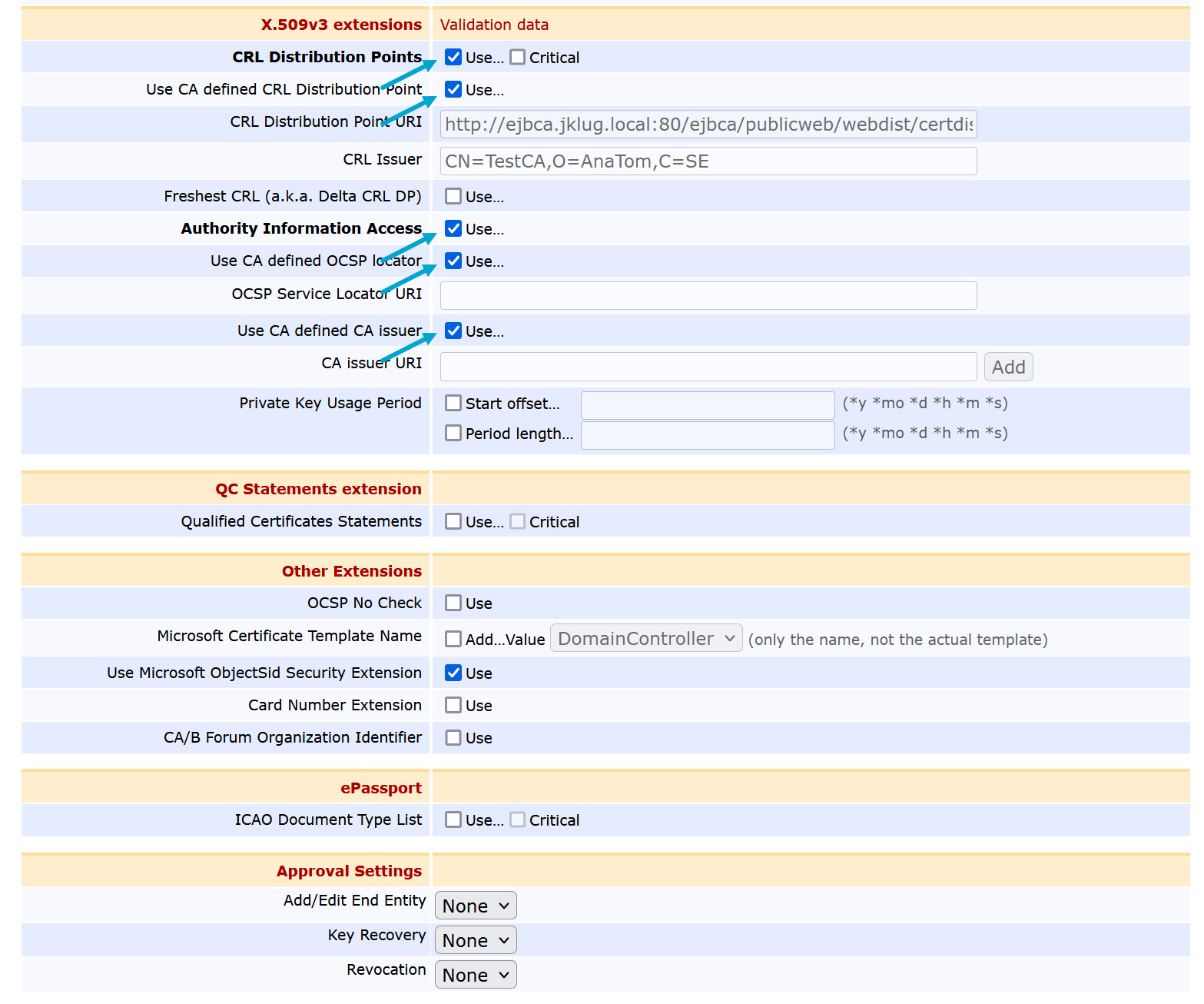 Authority Key ID>Use - Disable