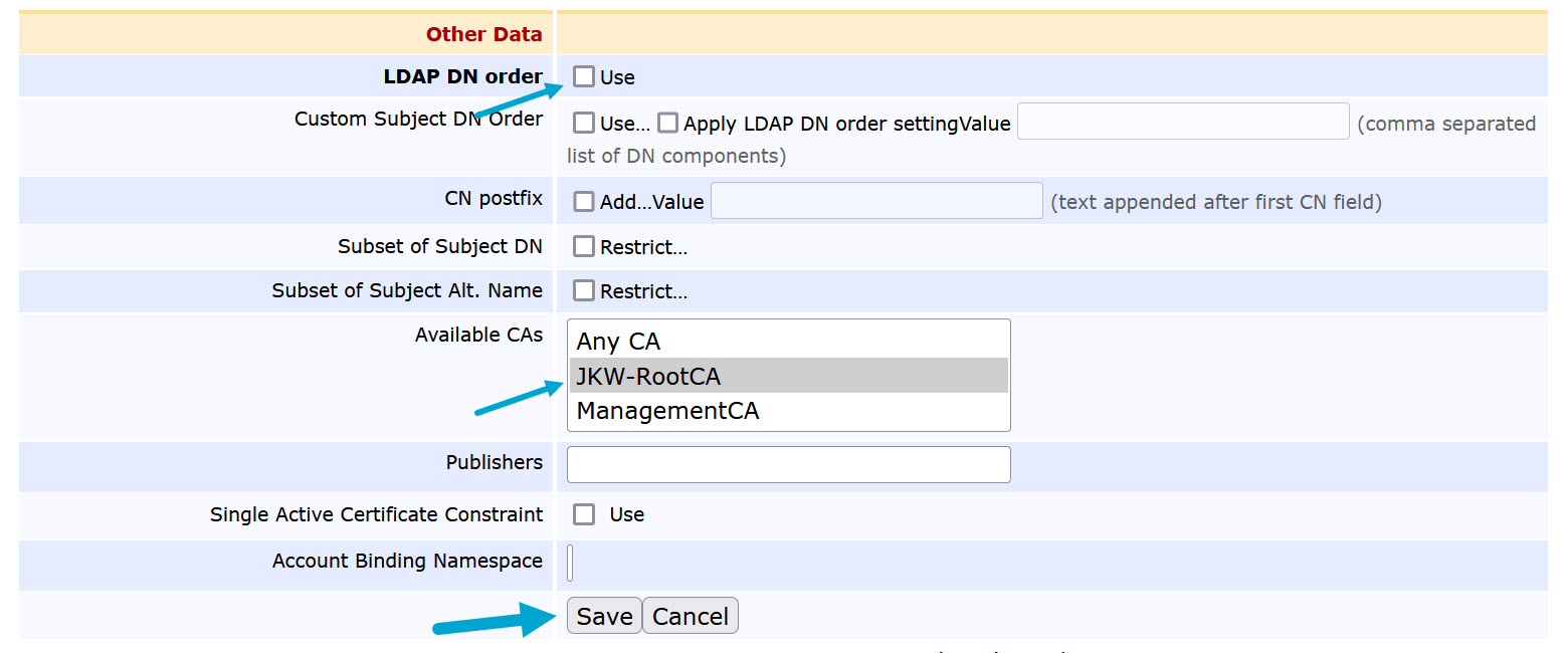 Available CAs>JKW-RootCA -