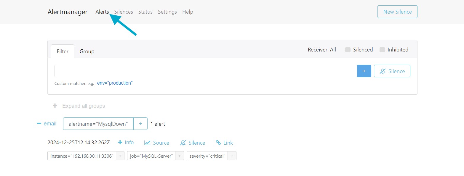 Verify the Alertmanager Alert #