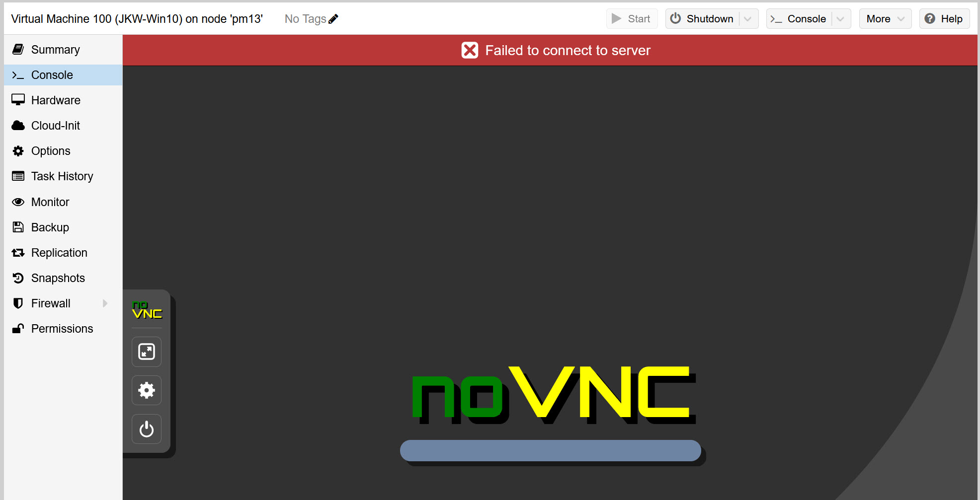 TASK ERROR: Failed to run vncproxy