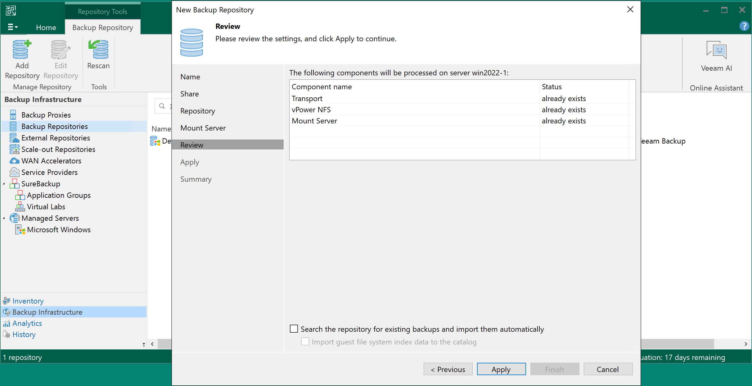 As base for the Veeam Backup & Replication installation I use a Windows Server 2022 that is not joind to a windows domain and is not used for any other purposes then Veeam.